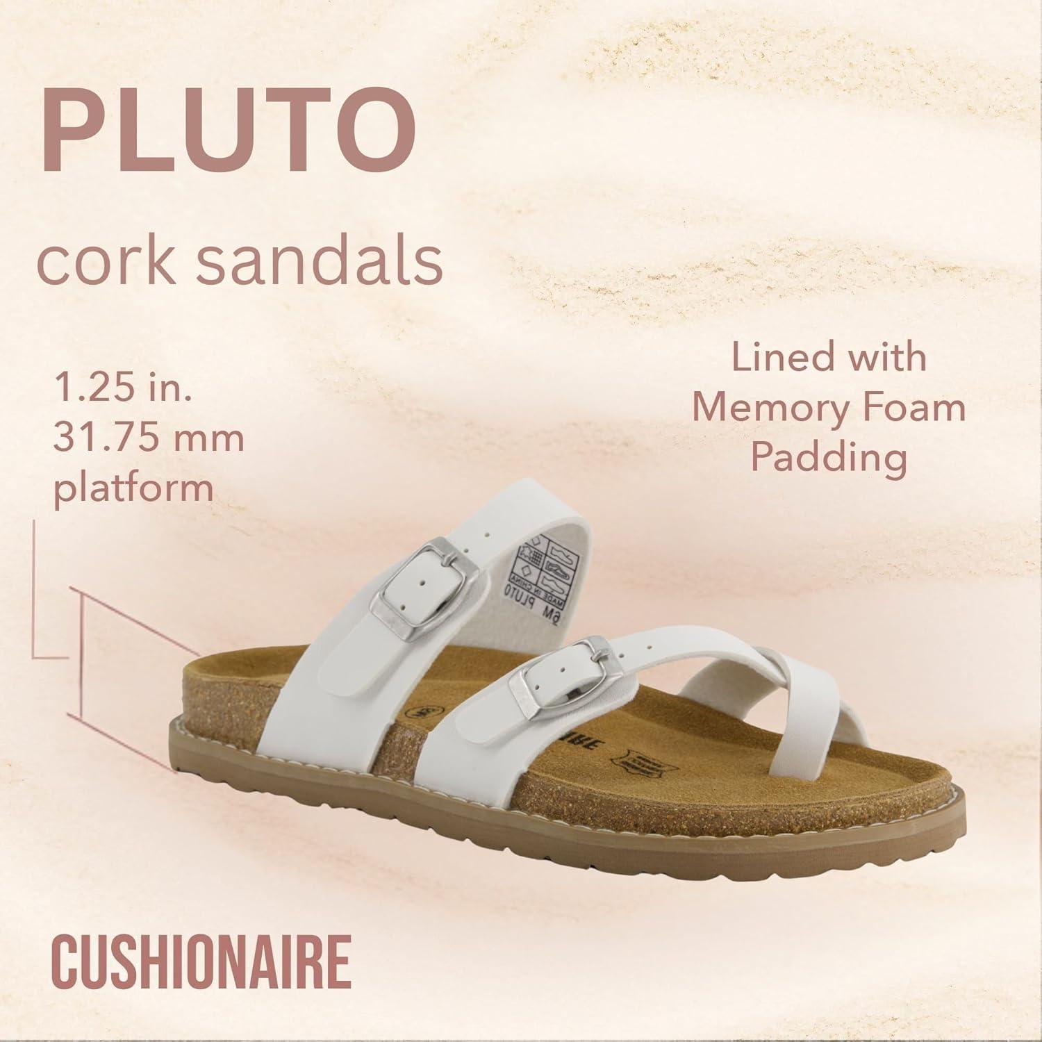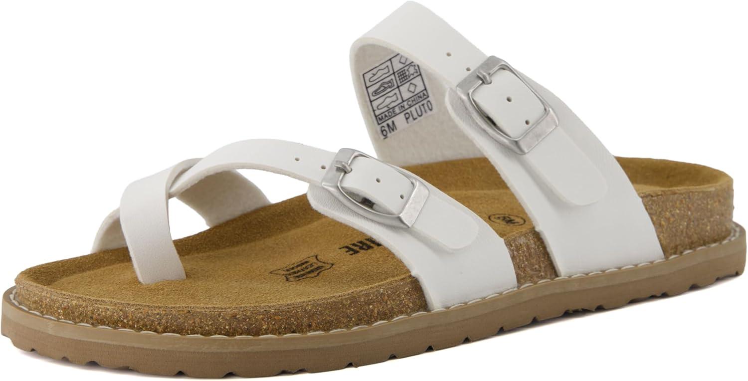 Get up to 60% off on CUSHIONAIRE Pluto Cork Footbed Summer Sandals for Women Comfortable Slides with Adjustable Buckles, Toe Loop & Stitched Design – Stylish Slip On Women Footwear(White) styles during our winter sale event.