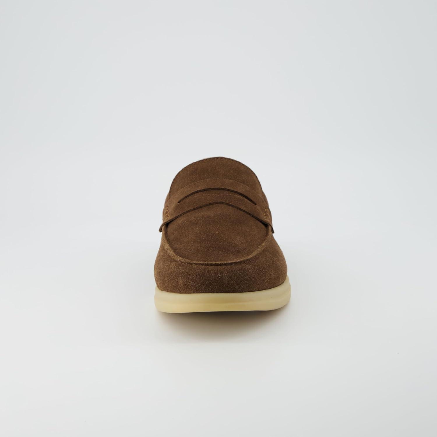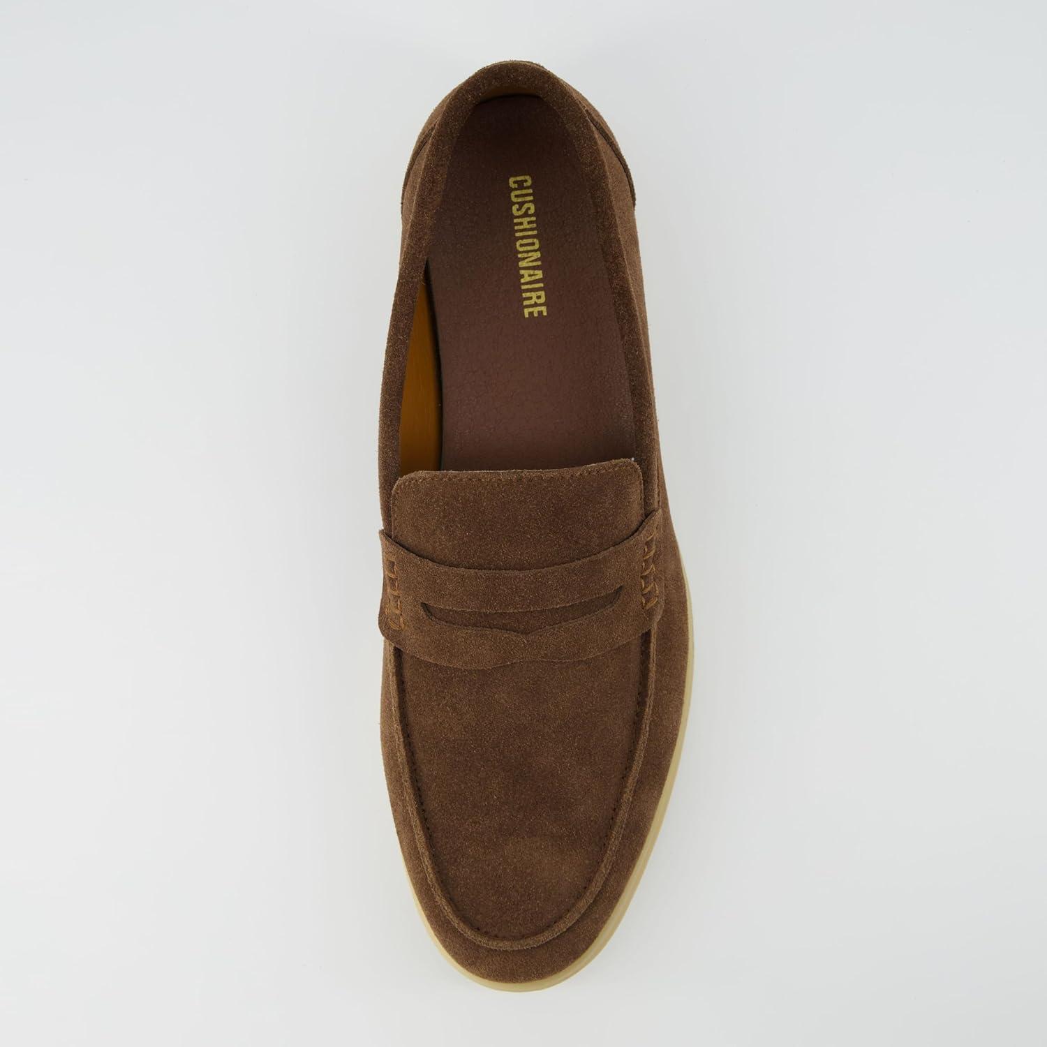 CUSHIONAIRE Selby Men's Genuine Leather Slip-On Casual Penny Loafers – Memory Foam, Rubber Sole(Brown Suede)