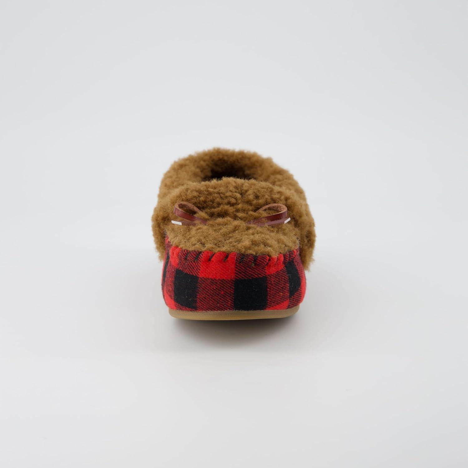 CUSHIONAIRE Stella Women’s Moccasin Slippers – Faux Fur Lining, Memory Foam & Wide Widths Available(Brown Combo)