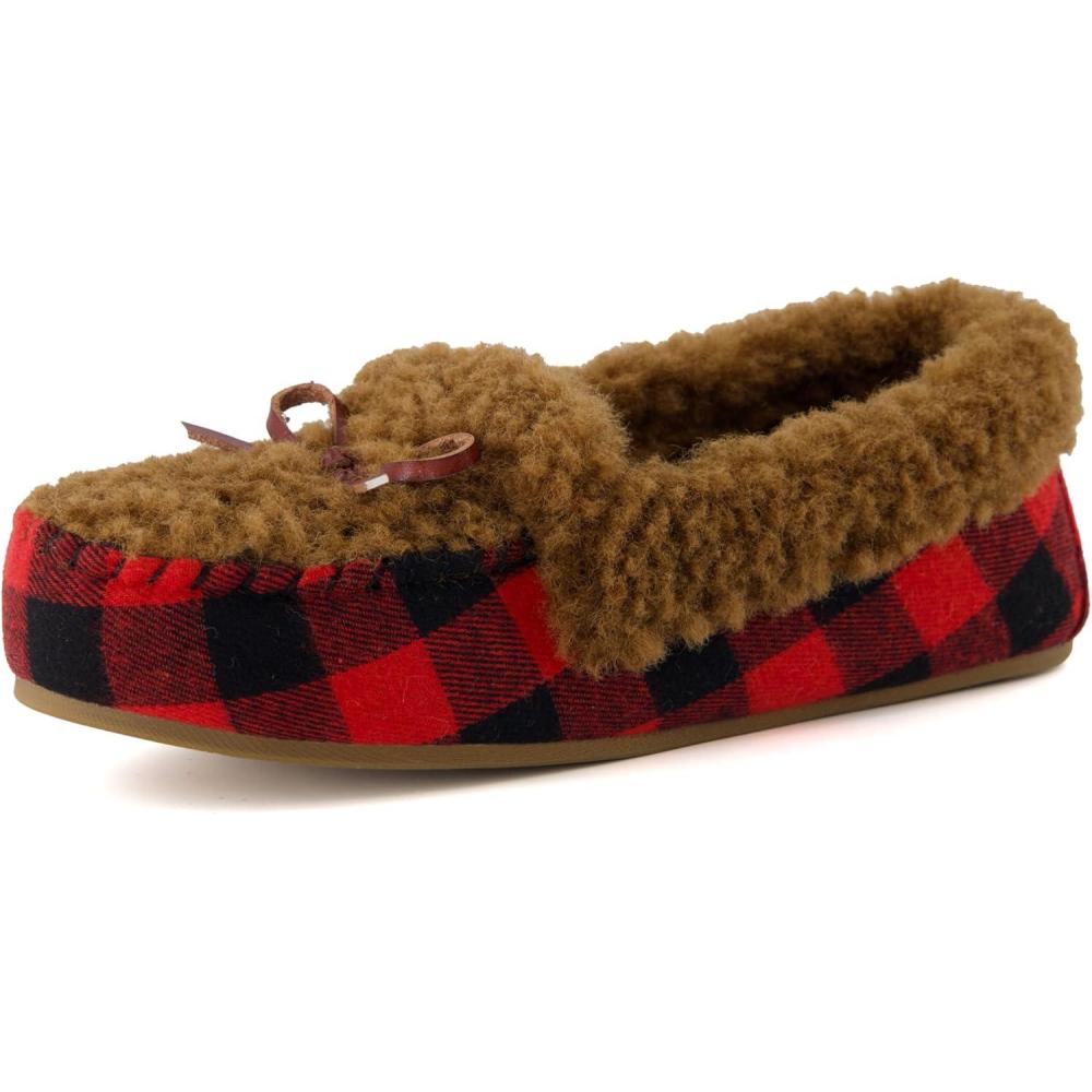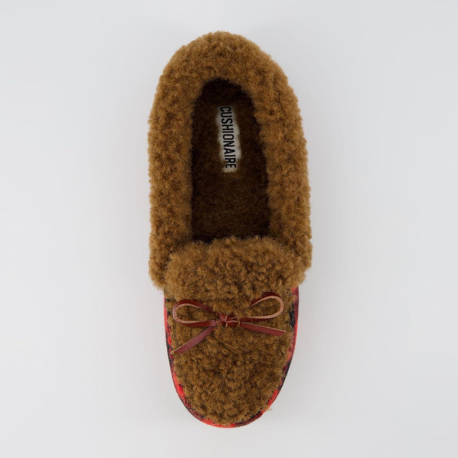 CUSHIONAIRE Stella Women’s Moccasin Slippers – Faux Fur Lining, Memory Foam & Wide Widths Available(Brown)