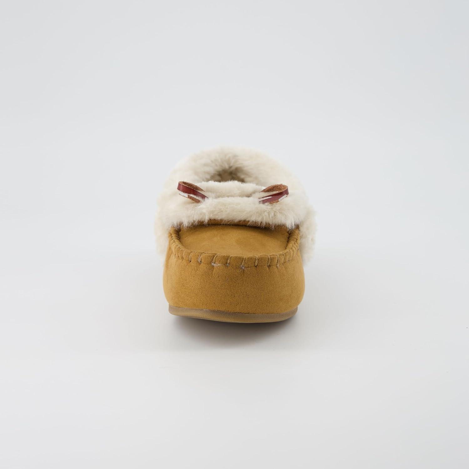 CUSHIONAIRE Stella Women’s Moccasin Slippers – Faux Fur Lining, Memory Foam & Wide Widths Available(Chestnut)