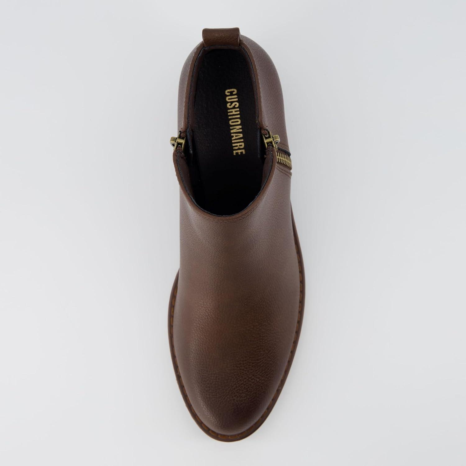 CUSHIONAIRE Taco Women’s Ankle Bootie – Low Heel Ankle Boots for Women with Memory Foam Comfort, Side Zipper, and Wide Widths Available(Chestnut Smooth)