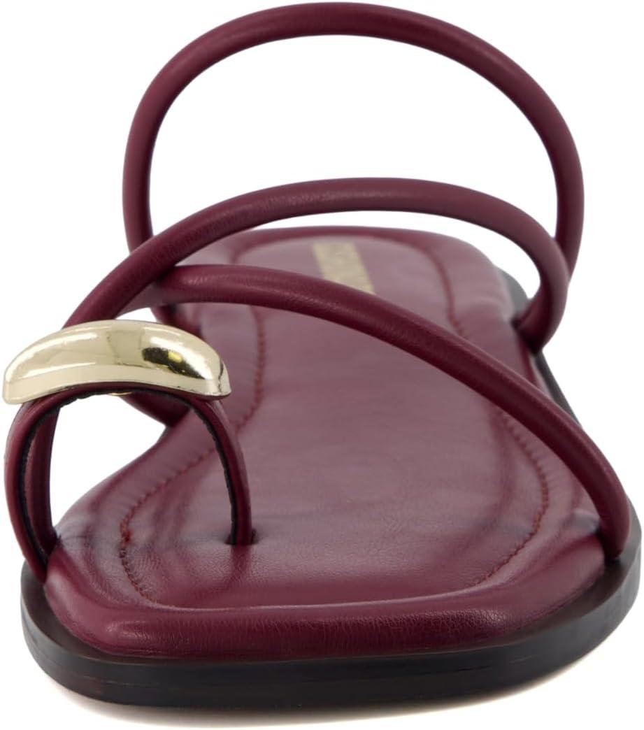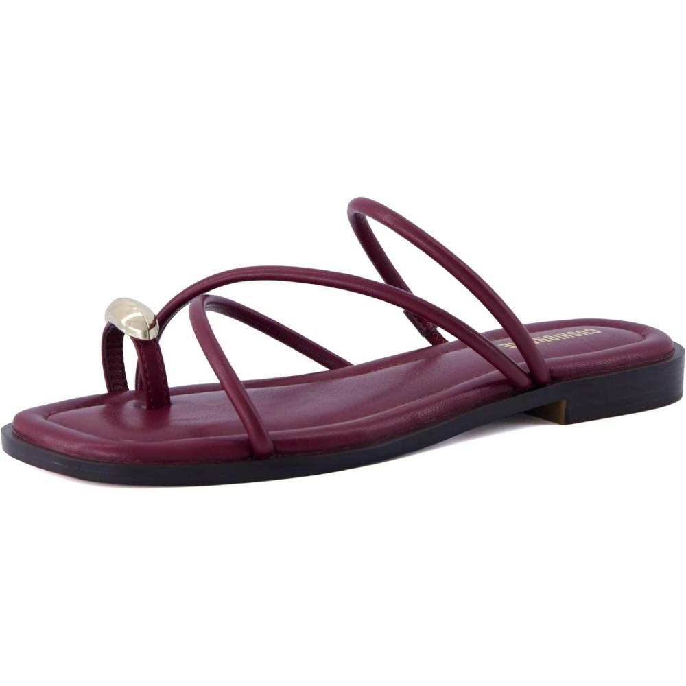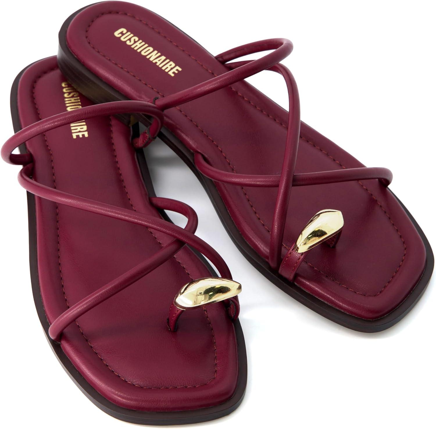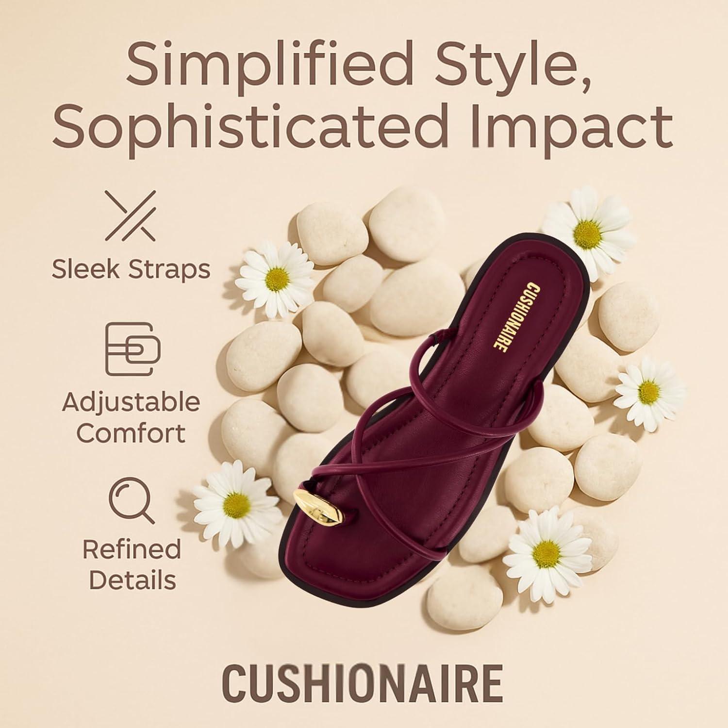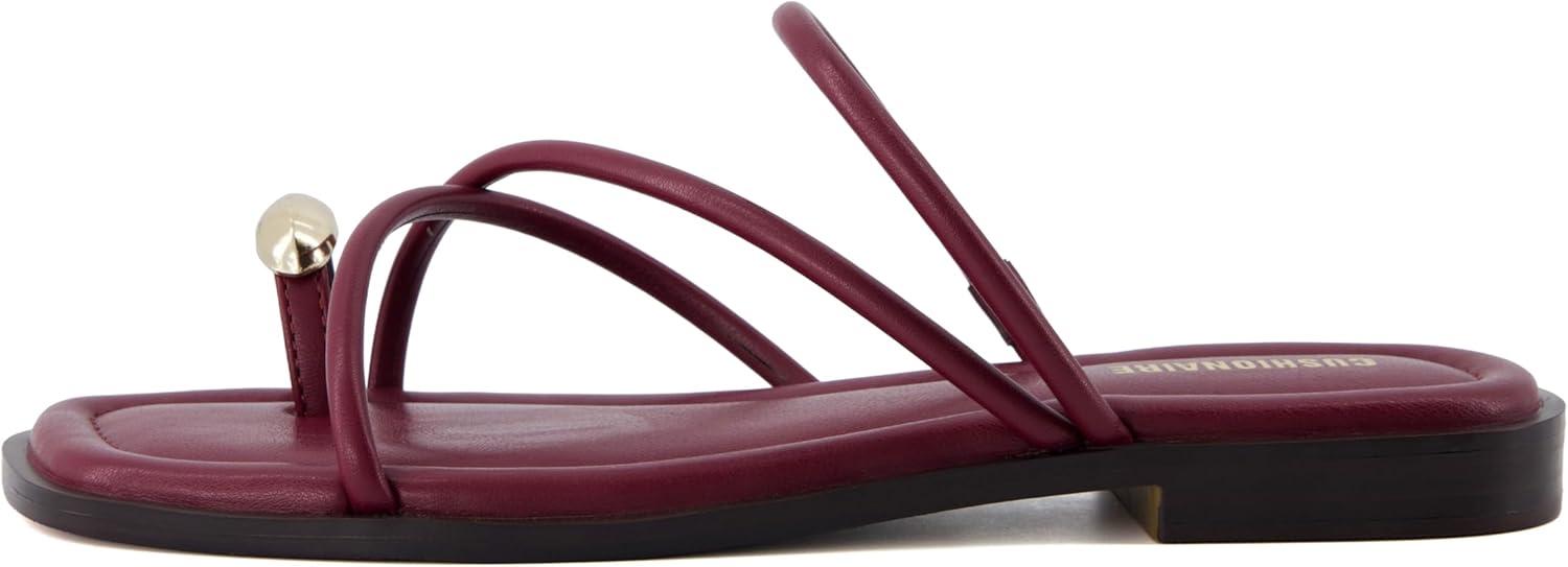 CUSHIONAIRE Venue Women’s Strappy Toe-Loop Slide Sandals with Gold-Tone Accent & Memory Foam Comfort(Burgundy)