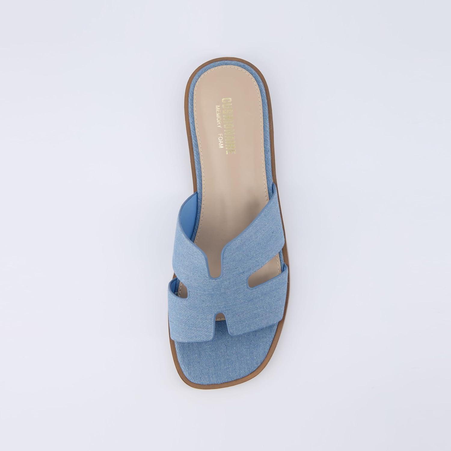 Don’t miss out on our limited-time offer: buy CUSHIONAIRE Voyage Cutout Strap Slides for Women, Slip On Summer Flats, Trendy Footwear, Comfortable Vacation Style Sandals for Women 2025(Denim), get {accessory} 50% off!