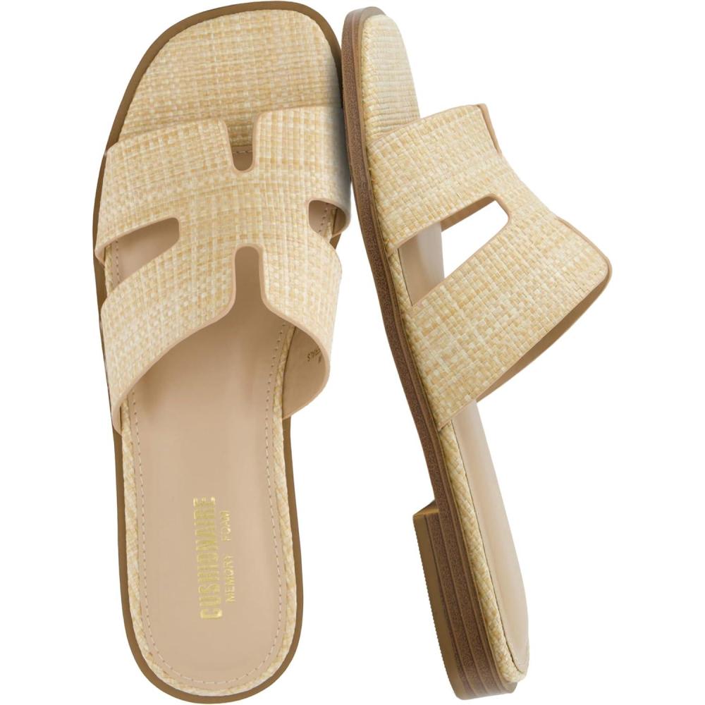 CUSHIONAIRE Voyage Cutout Strap Slides for Women, Slip On Summer Flats, Trendy Footwear, Comfortable Vacation Style Sandals for Women 2025(Raffia)