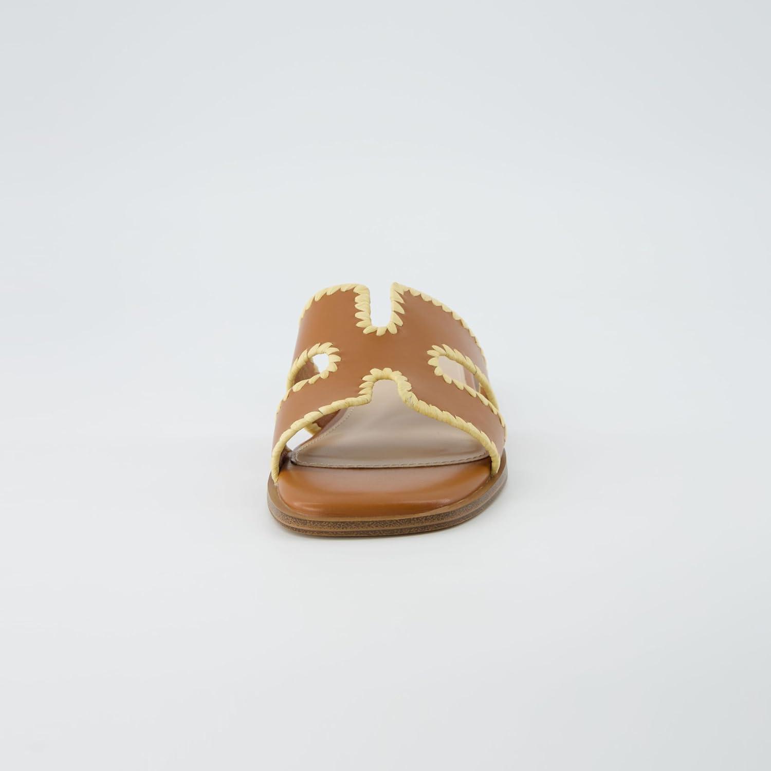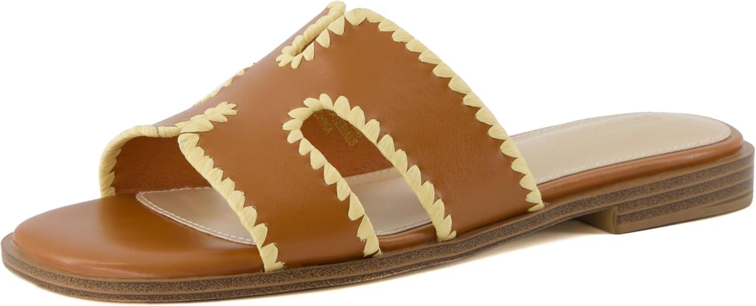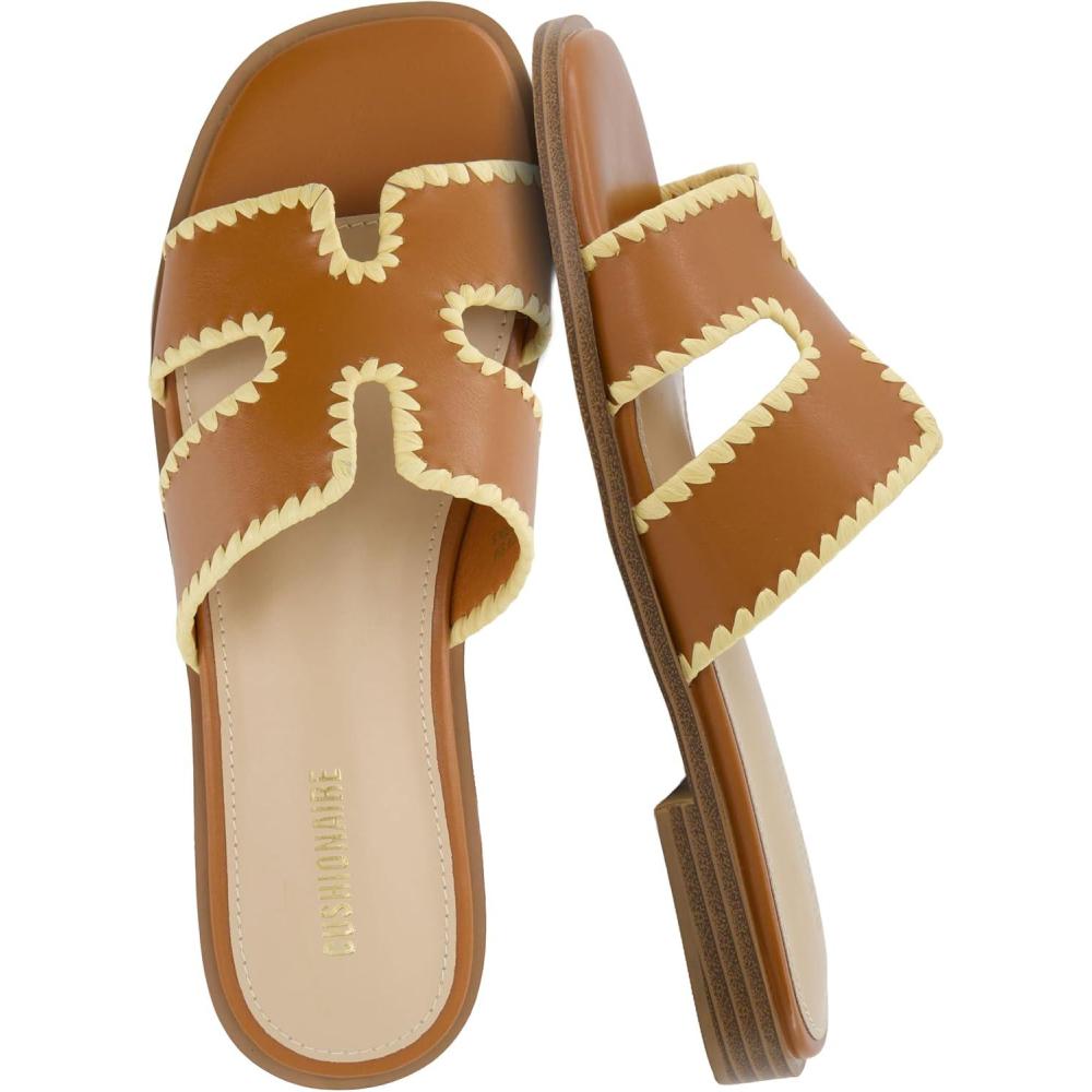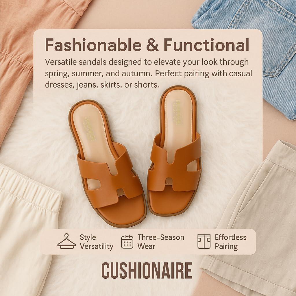 CUSHIONAIRE Voyage Cutout Strap Slides for Women, Slip On Summer Flats, Trendy Footwear, Comfortable Vacation Style Sandals for Women 2025(Whiskey Woven)