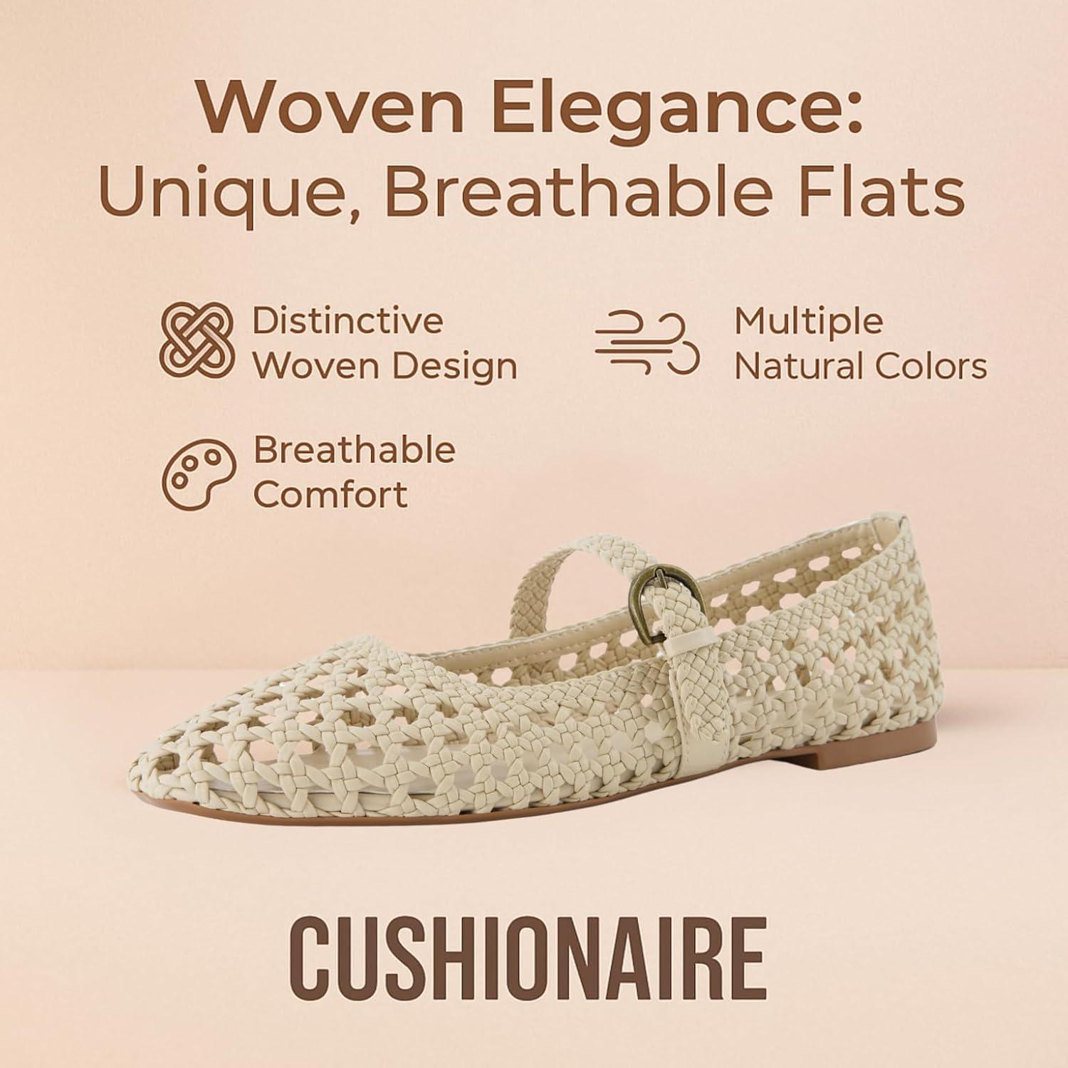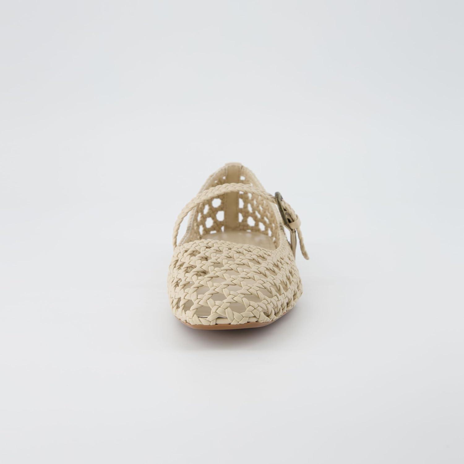 CUSHIONAIRE Weston Women’s Hand Woven Dressy Ballet Flats – Faux Leather Mary Jane with Adjustable Strap & Memory Foam(Wheat Woven)