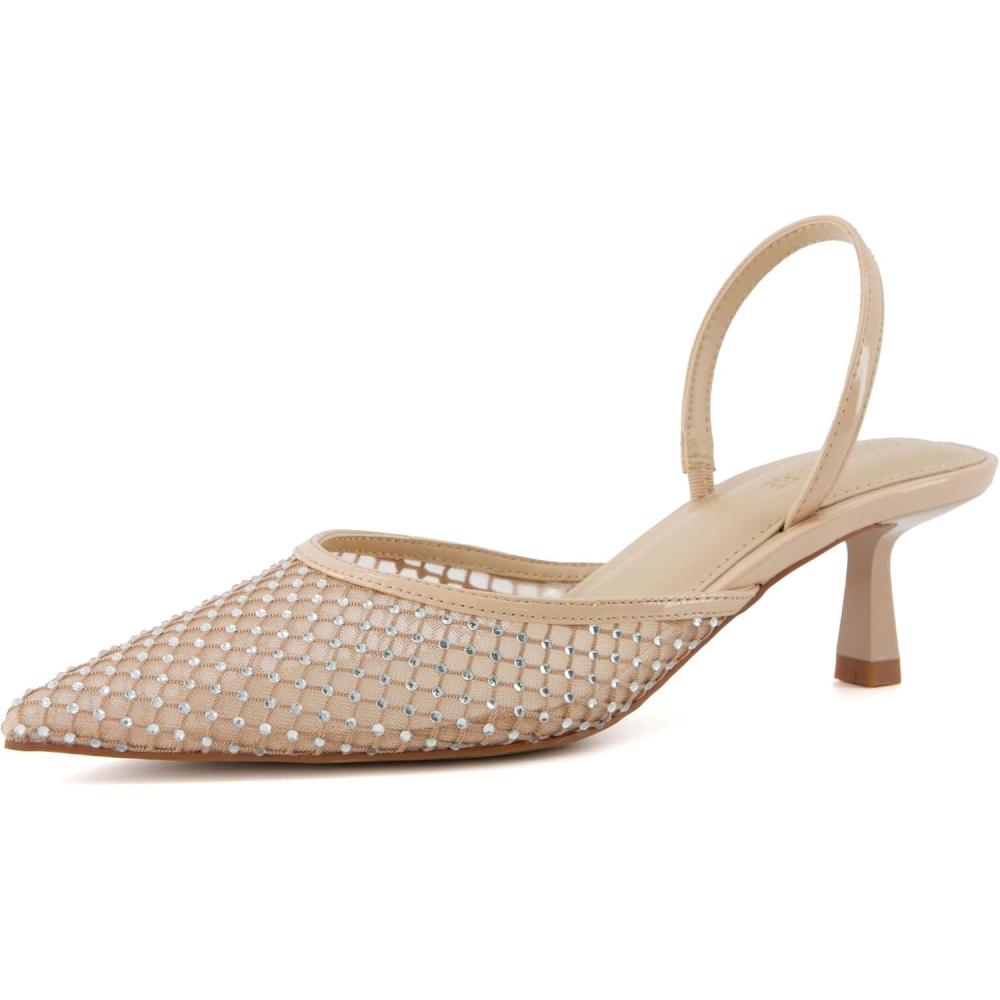 CUSHIONAIRE Women's Affair Rhinestone Mesh Kitten Heel Slingback Pumps +Memory Foam, Wide Widths Available(Nude Embellish)