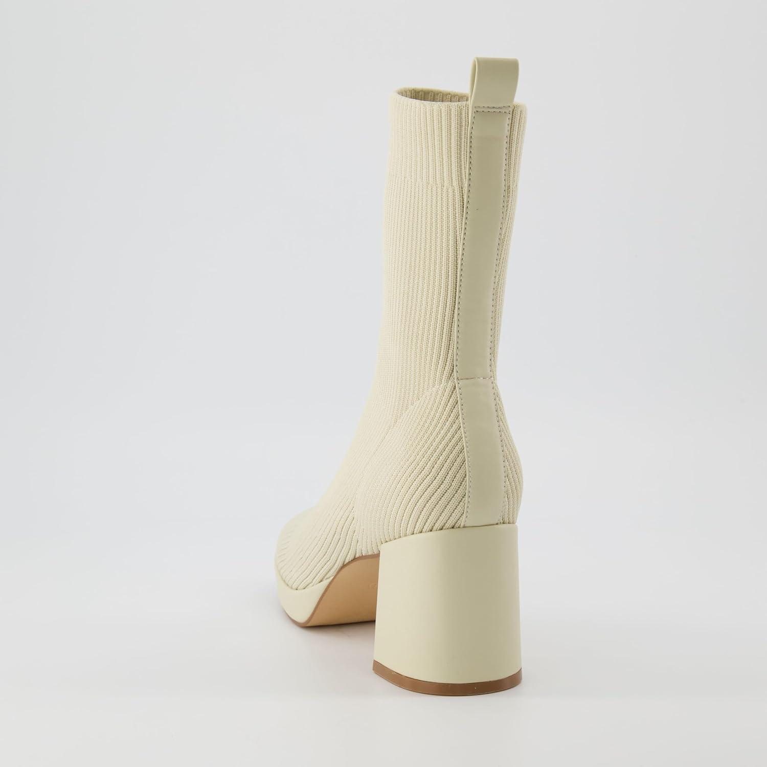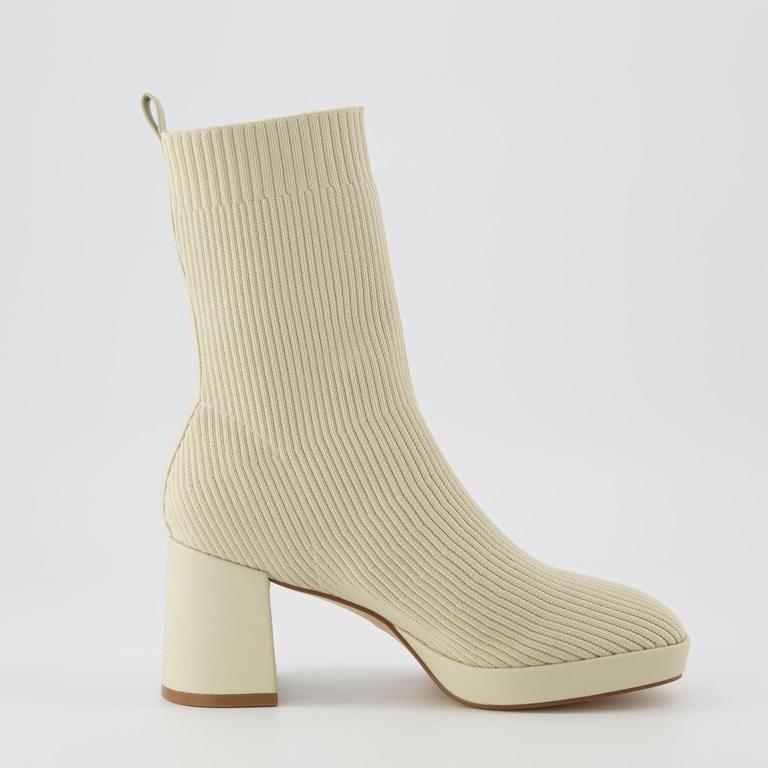 CUSHIONAIRE Women's Bancroft Stretch platform heel boot +Memory Foam, Wide Widths Available(Ivory)