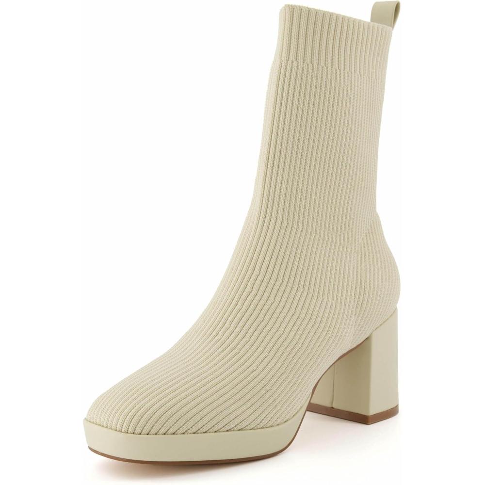 CUSHIONAIRE Women’s Bancroft Stretch platform heel boot +Memory Foam, Wide Widths Available(Ivory)