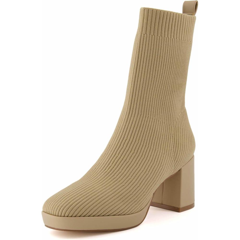 CUSHIONAIRE Women's Bancroft Stretch platform heel boot +Memory Foam, Wide Widths Available(Sand)