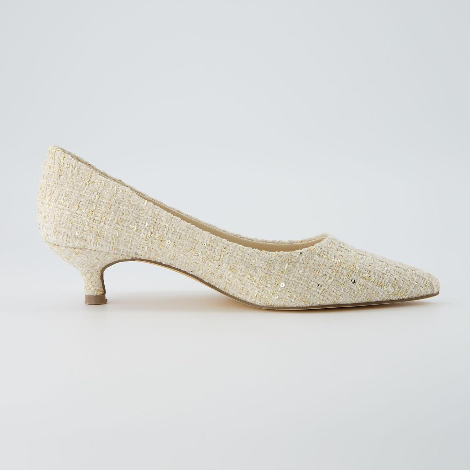 CUSHIONAIRE Women’s Bay Kitten Heel Dress Shoe +Memory Foam, Wide Widths Available(Beige)