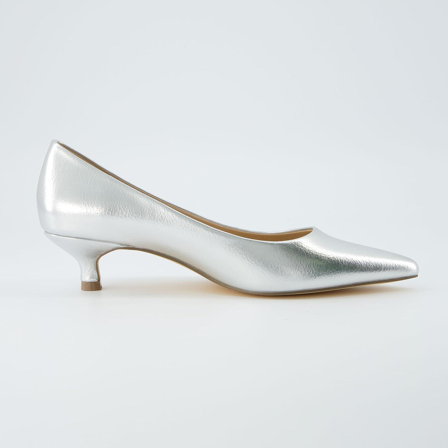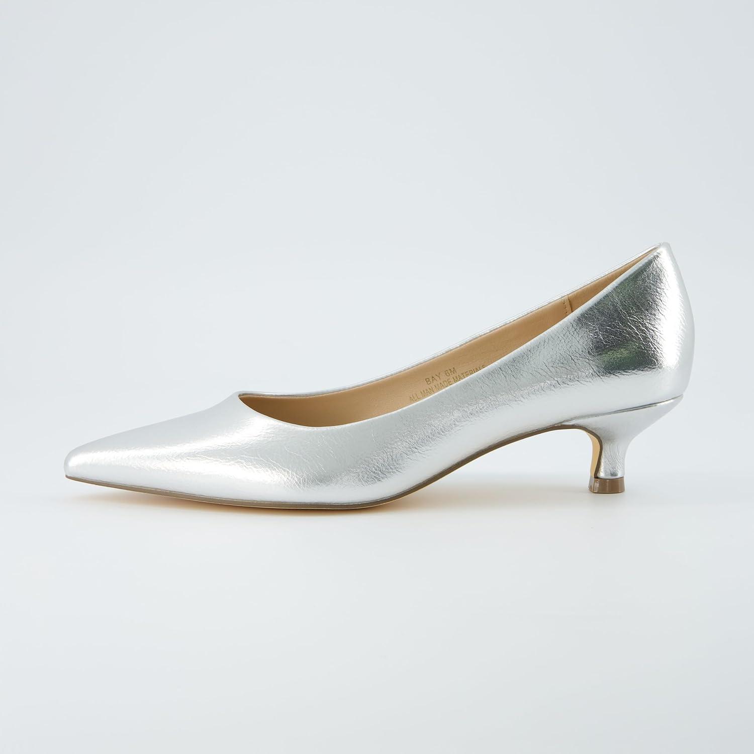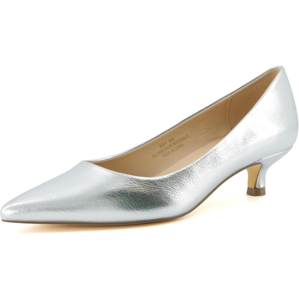 CUSHIONAIRE Women’s Bay Kitten Heel Dress Shoe +Memory Foam, Wide Widths Available(Silver Metallic)