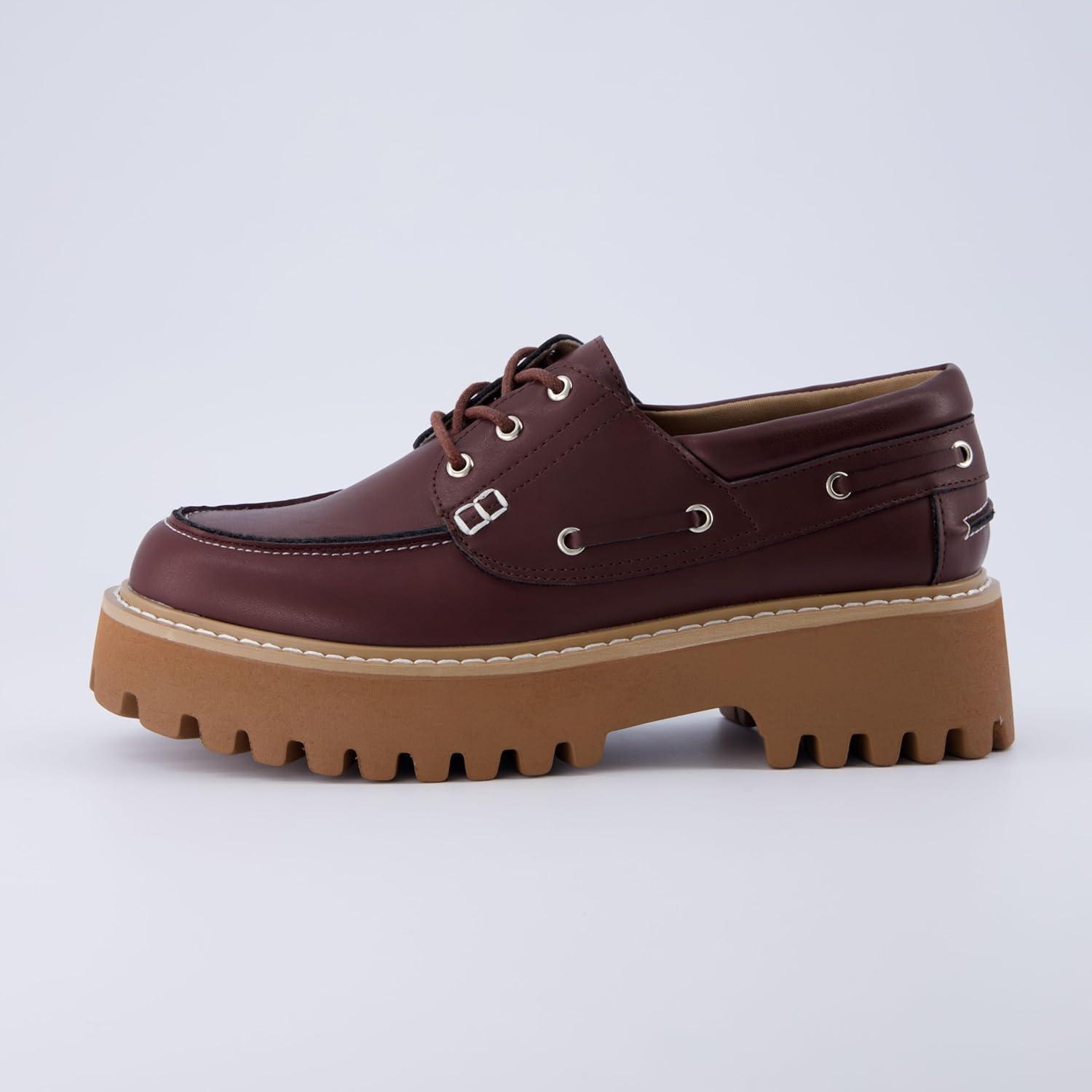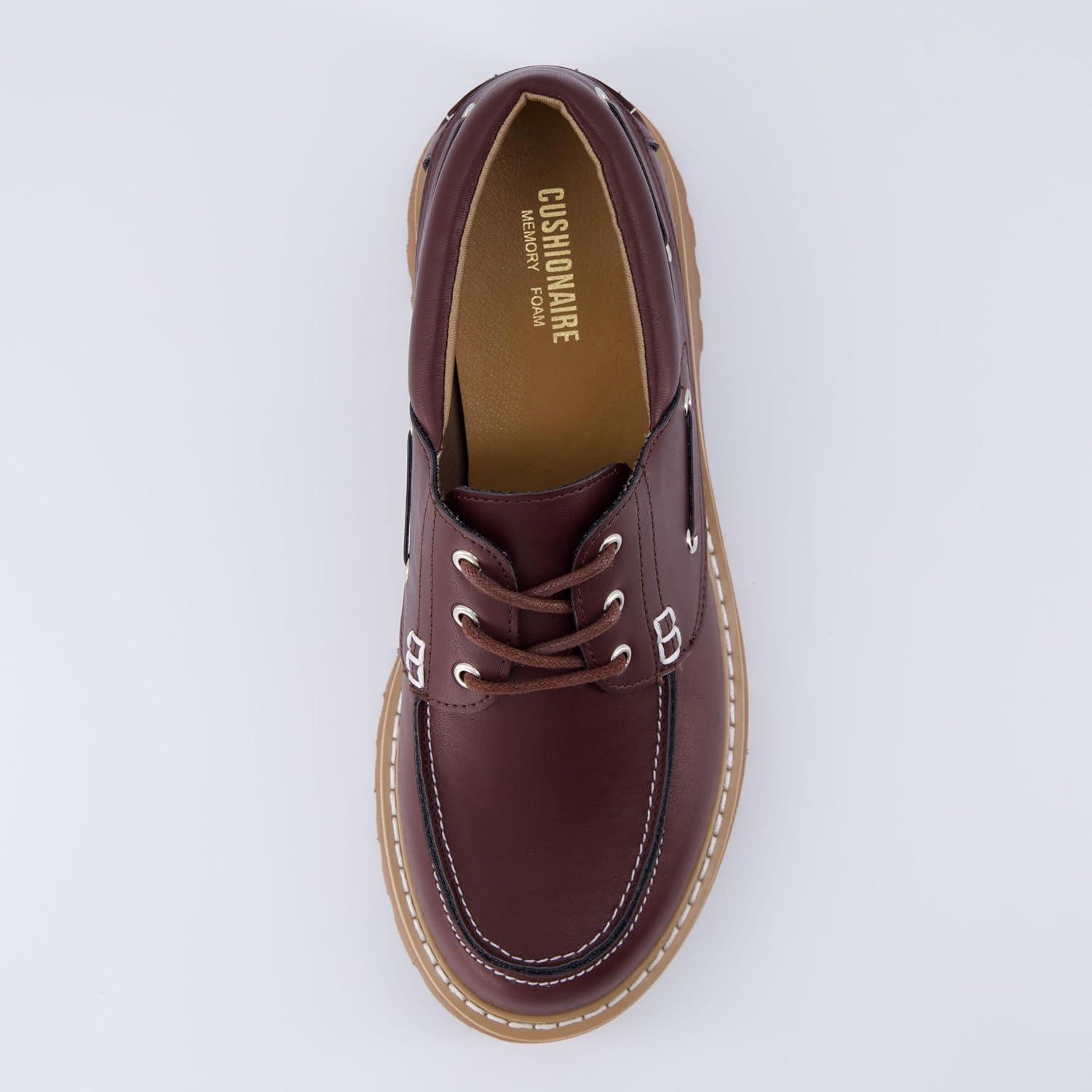 CUSHIONAIRE Women’s Beam Chunky Boat Loafer +Memory Foam, Wide Widths Available(Burgandy)