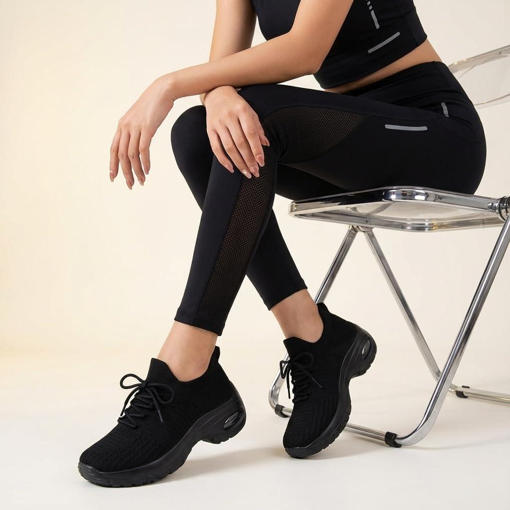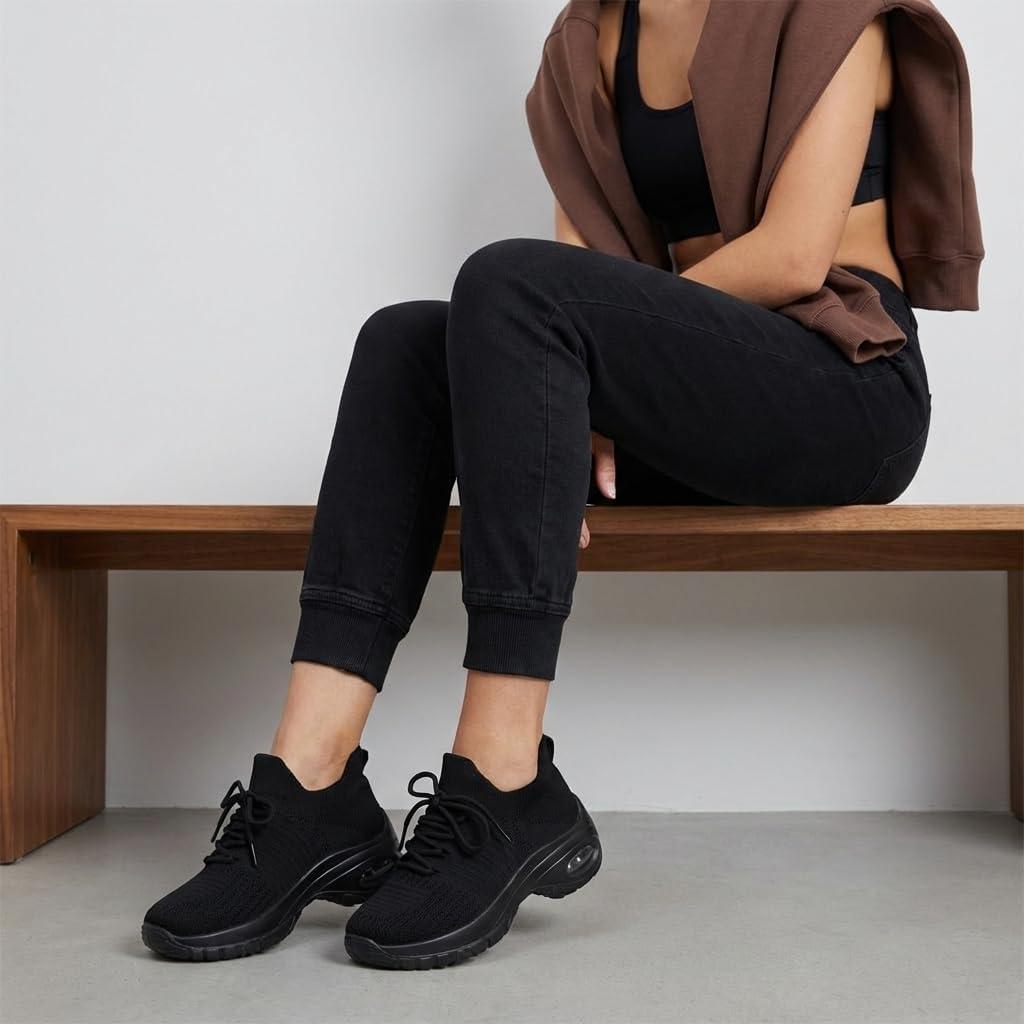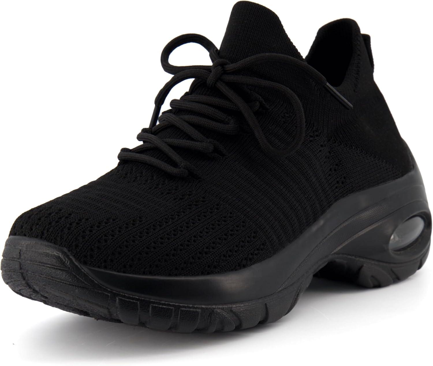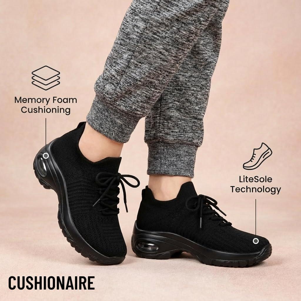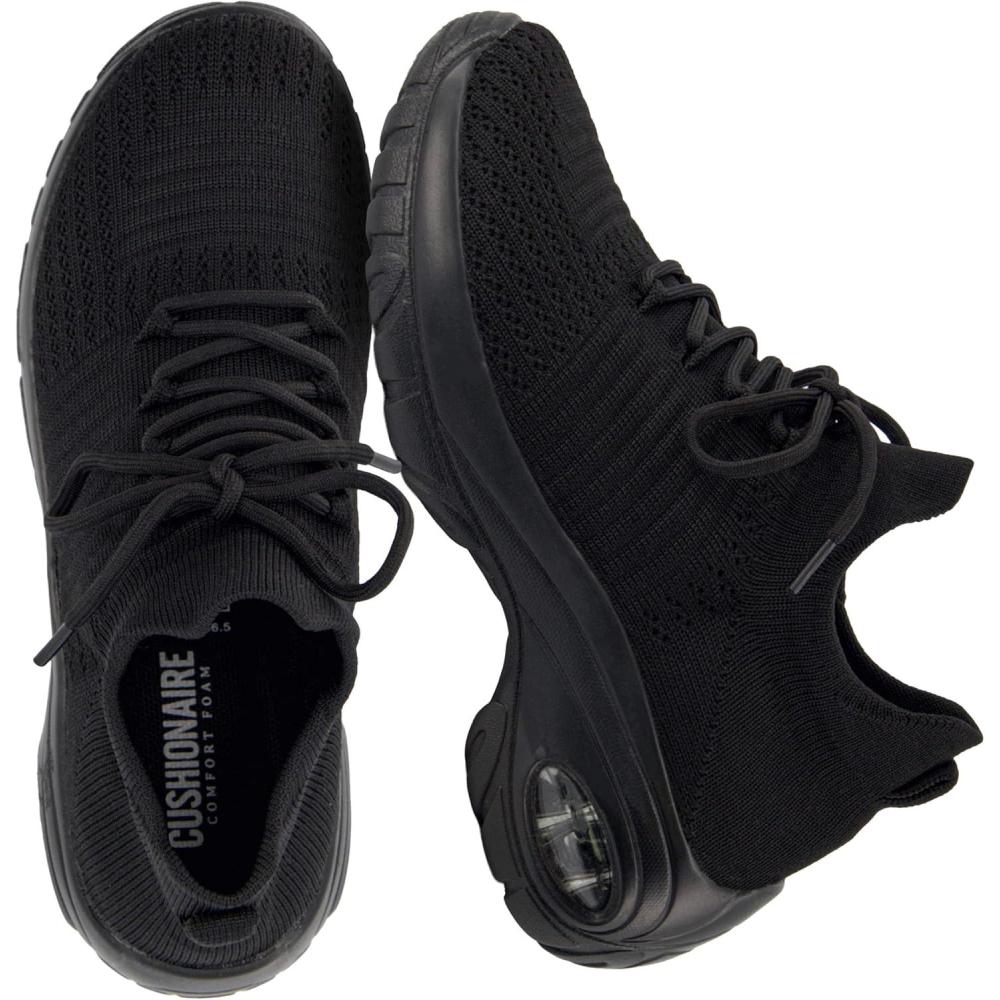 CUSHIONAIRE Women's Blaze Stretch Knit Slip on lace Sneaker +Memory Foam & LiteSole Technology(Black/Black)