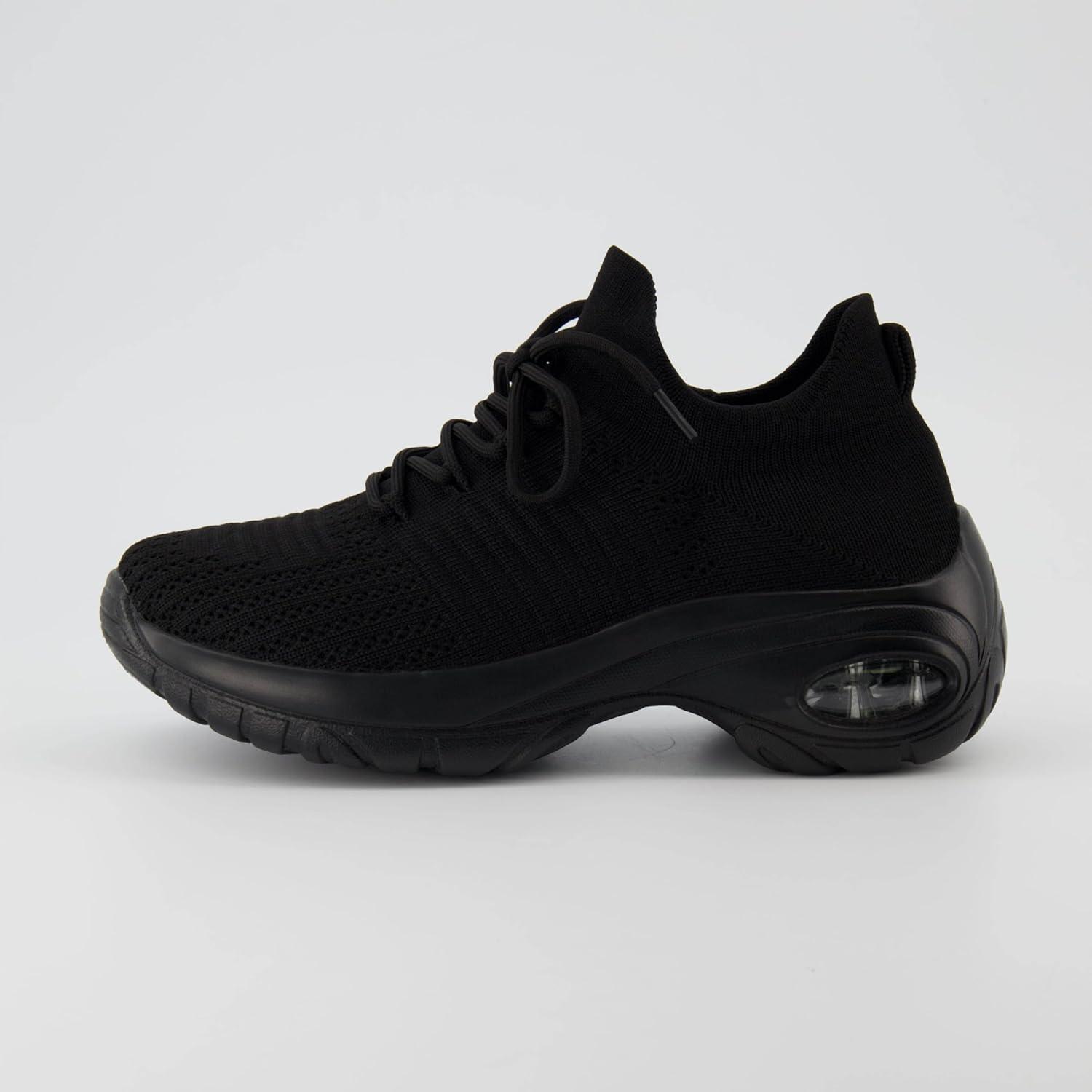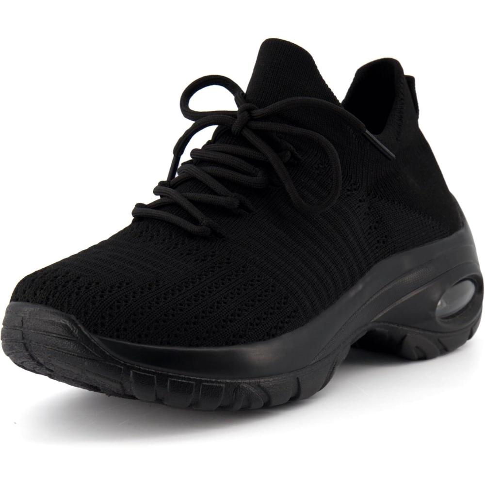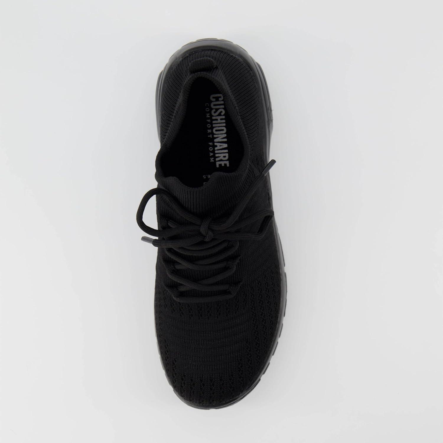 CUSHIONAIRE Women's Blaze Stretch Knit Slip on lace Sneaker +Memory Foam & LiteSole Technology(Black/Black)