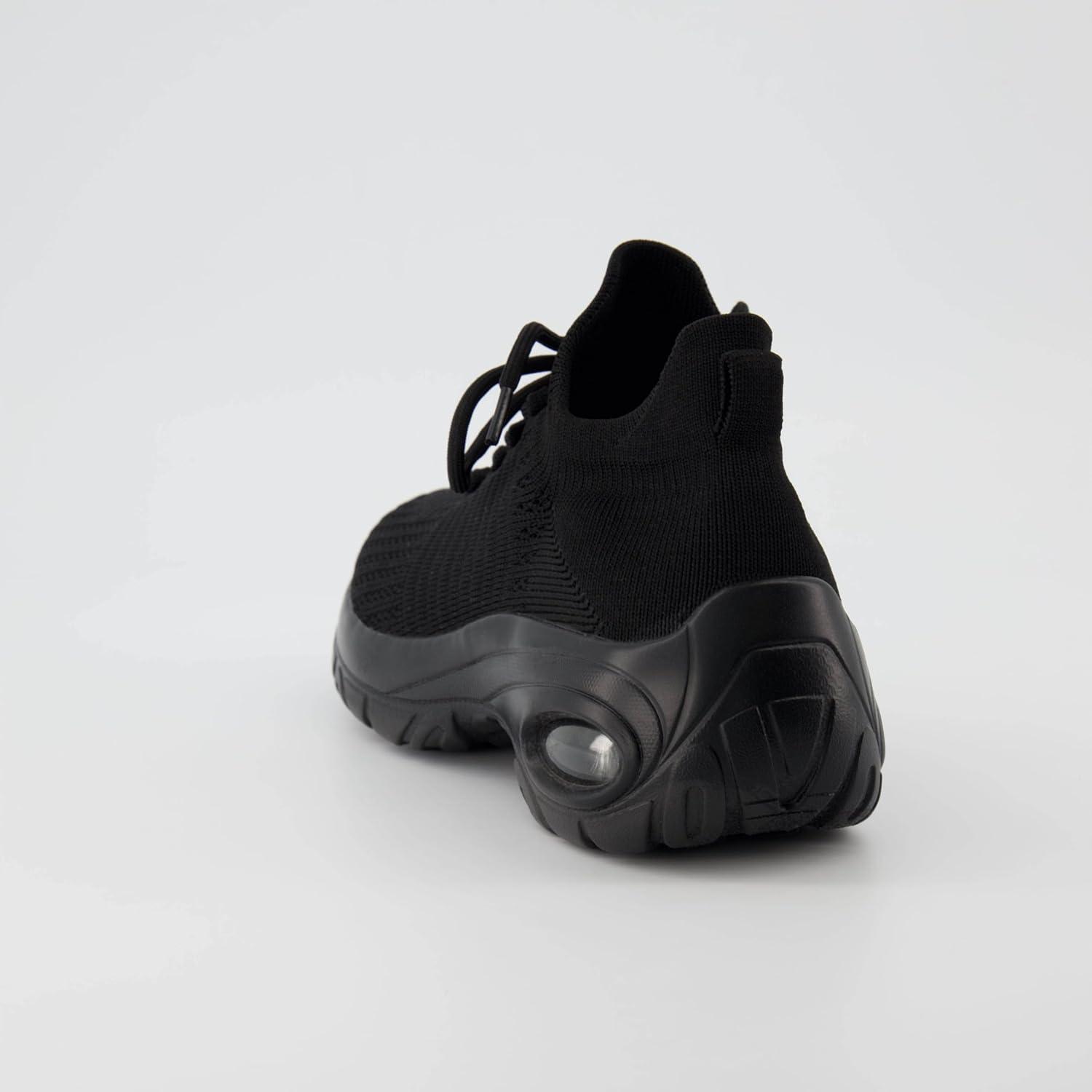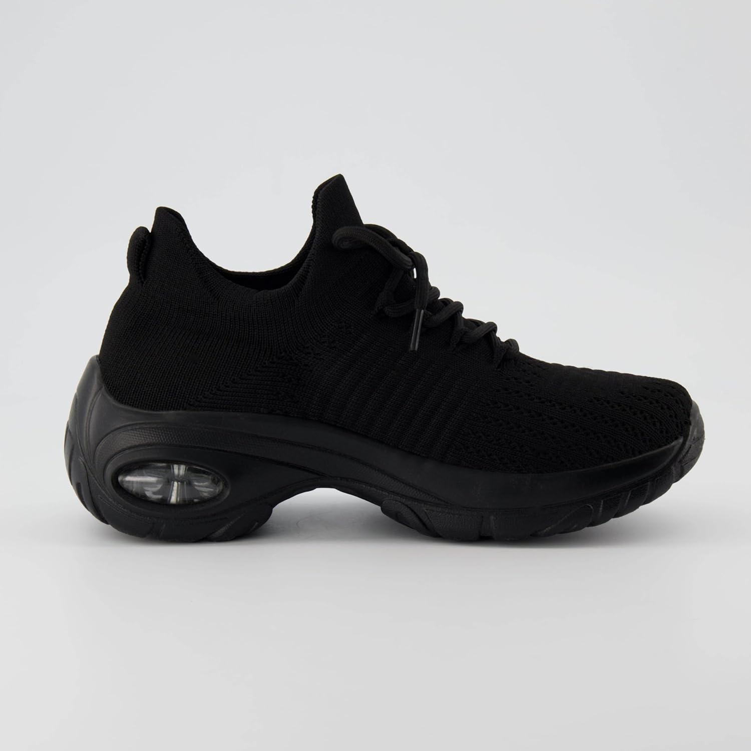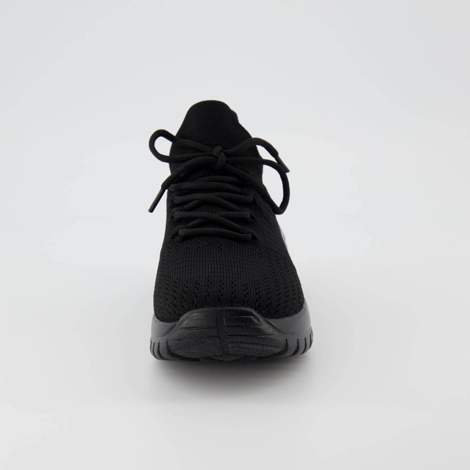 CUSHIONAIRE Women's Blaze Stretch Knit Slip on lace Sneaker +Memory Foam & LiteSole Technology(Black/Black)