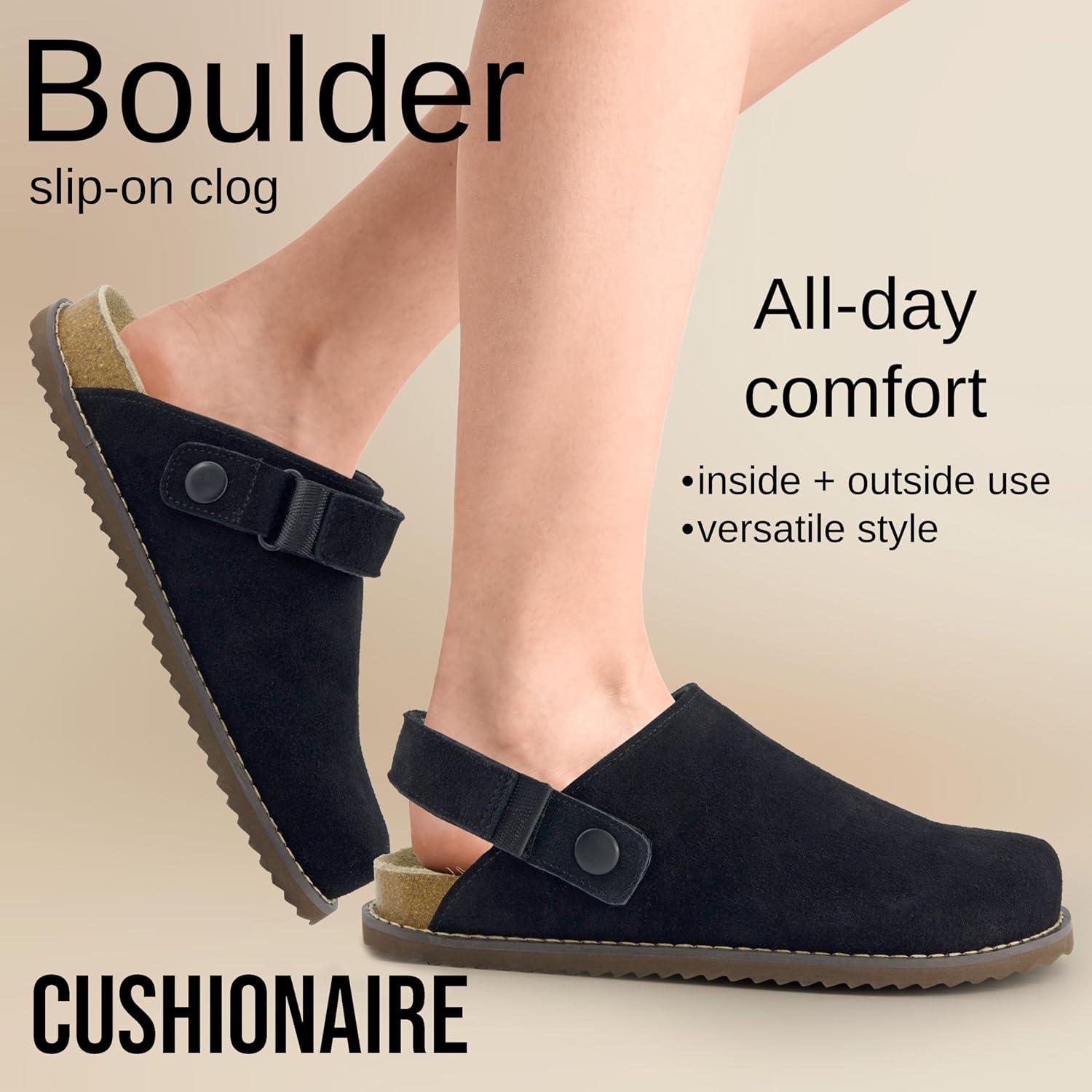 𝐄𝐱𝐩𝐞𝐫𝐢𝐞𝐧𝐜𝐞 𝐭𝐡𝐞 𝐮𝐥𝐭𝐢𝐦𝐚𝐭𝐞 𝐢𝐧 𝐜𝐨𝐦𝐟𝐨𝐫𝐭 𝐚𝐧𝐝 𝐟𝐥𝐞𝐱𝐢𝐛𝐢𝐥𝐢𝐭𝐲 with the 𝗖𝗨𝗦𝗛𝗜𝗢𝗡𝗔𝗜𝗥𝗘 Women's Boulder Genuine Suede Clog. This clog is crafted from premium, breathable suede and features a 𝗩𝗲𝗿𝘀𝗮𝘁𝗶𝗹𝗲 𝗦𝘄𝗶𝘃𝗲𝗹 𝗦𝘁𝗿𝗮𝗽 that lets you easily switch between a backless slip-on and a secure back-strap fit. A 𝗠𝗲𝗺𝗼𝗿𝘆 𝗙𝗼𝗮𝗺 𝗜𝗻𝘀𝗼𝗹𝗲 offers cushioning that molds to your foot, while the lightweight, shock-absorbing 𝗘𝗩𝗔 𝗦𝗼𝗹𝗲 provides durability and stability. 𝗔𝘃𝗮𝗶𝗹𝗮𝗯𝗹𝗲 𝗶𝗻 𝗪𝗶𝗱𝗲 𝗪𝗶𝗱𝘁𝗵𝘀 for a comfortable fit, this clog is perfect for everything from casual outings to weekend relaxation.