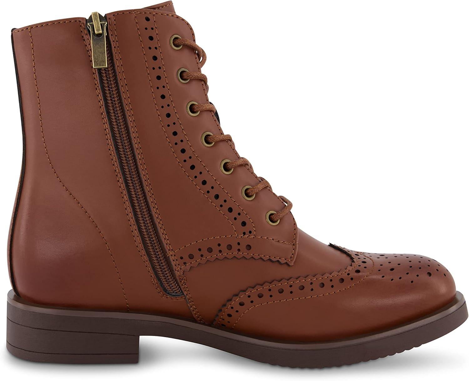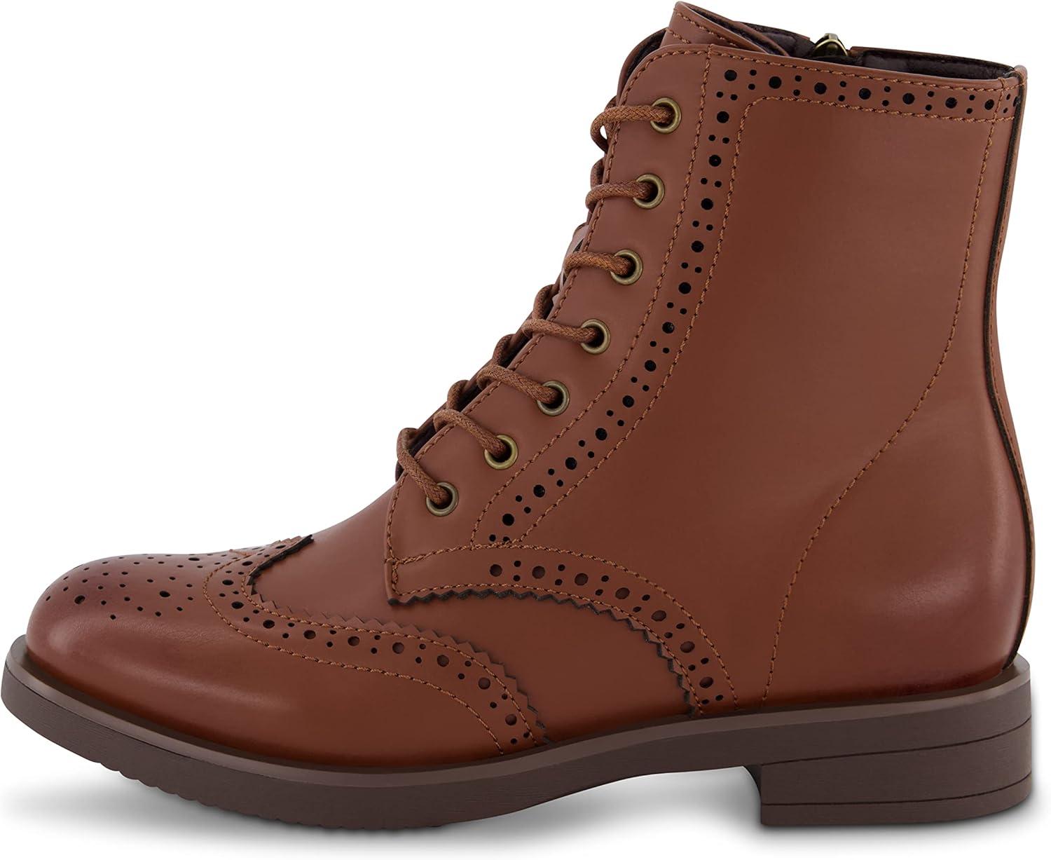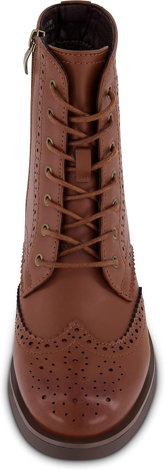 CUSHIONAIRE Women’s Boyfriend wing tip boot +Memory Foam, Wide Widths Available(Cognac)