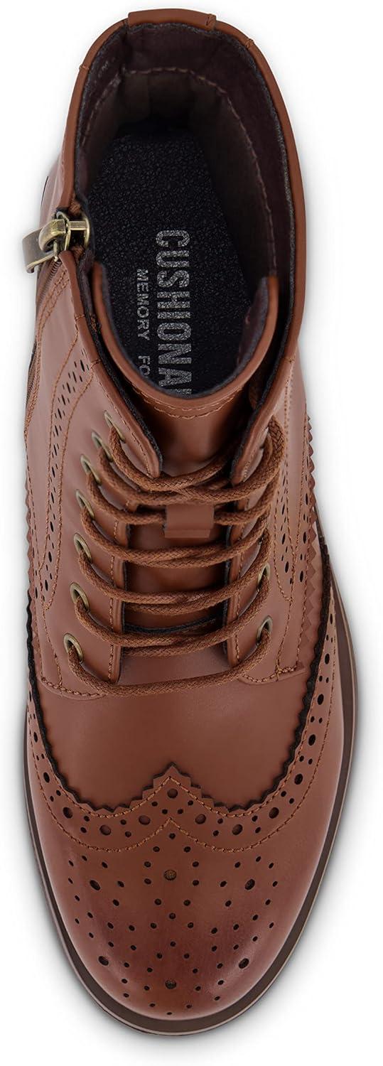 CUSHIONAIRE Women's Boyfriend wing tip boot +Memory Foam, Wide Widths Available(Cognac)