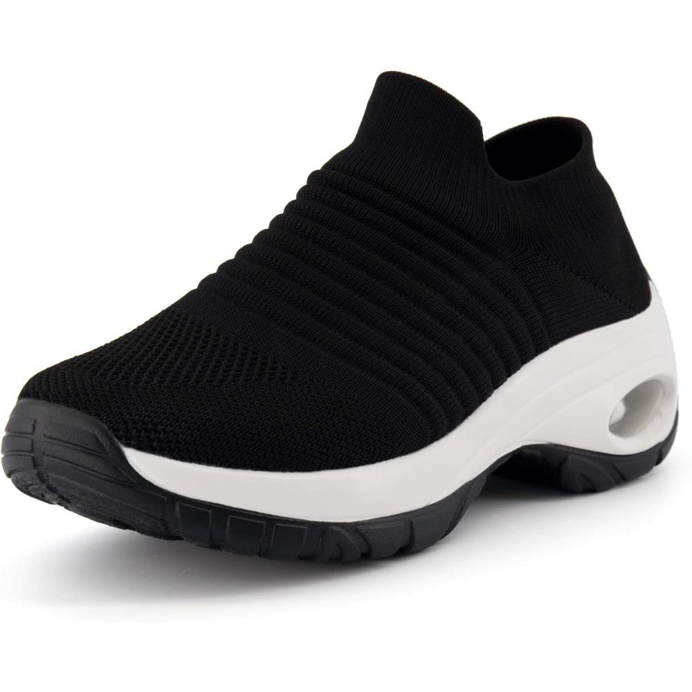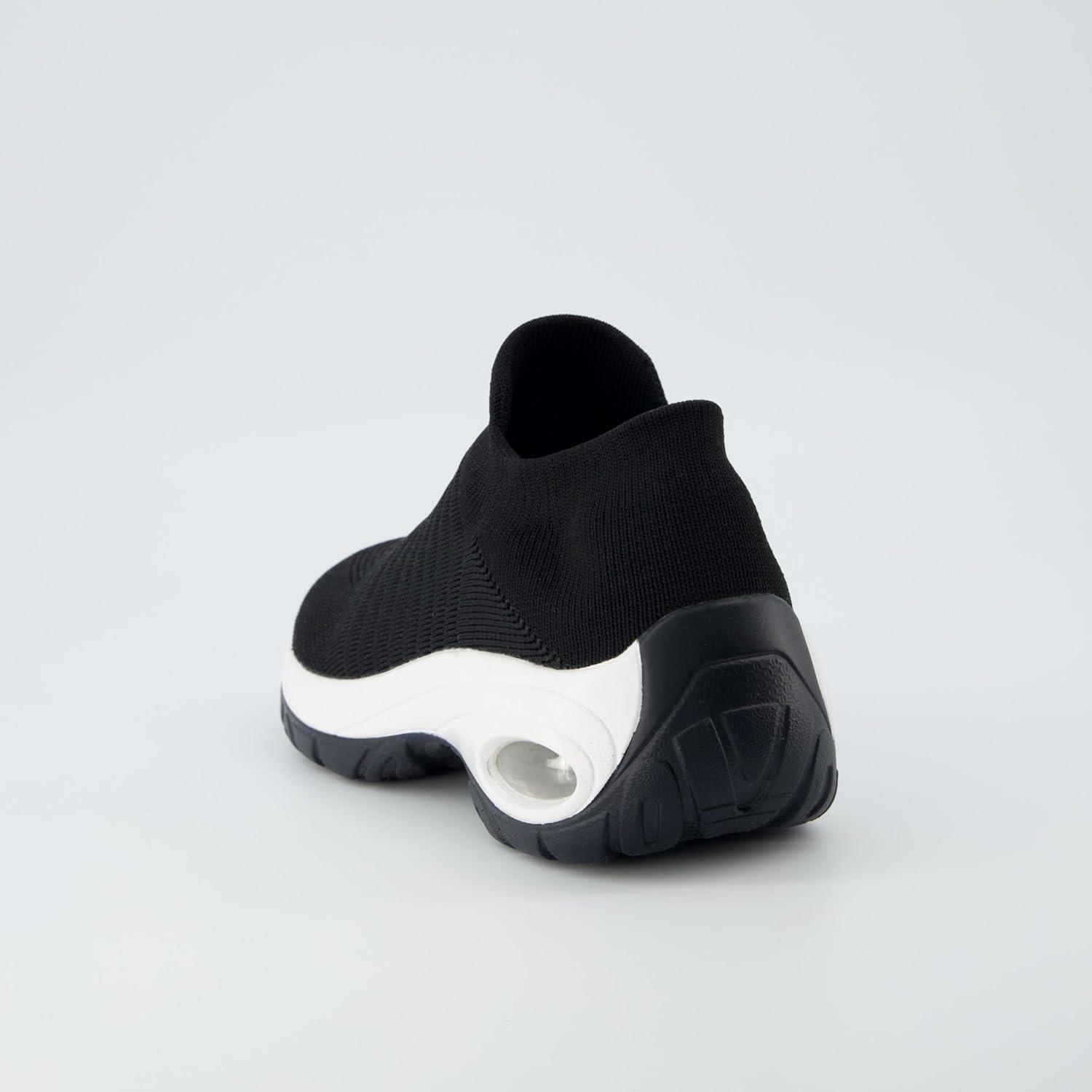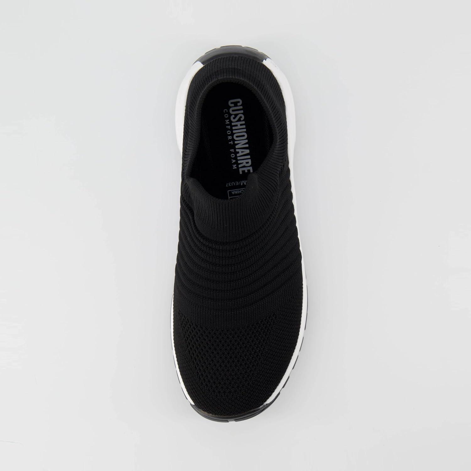 CUSHIONAIRE Women’s Breeze Stretch Knit Slip on Sneaker +Memory Foam & LiteSole Technology(Black/Wht)
