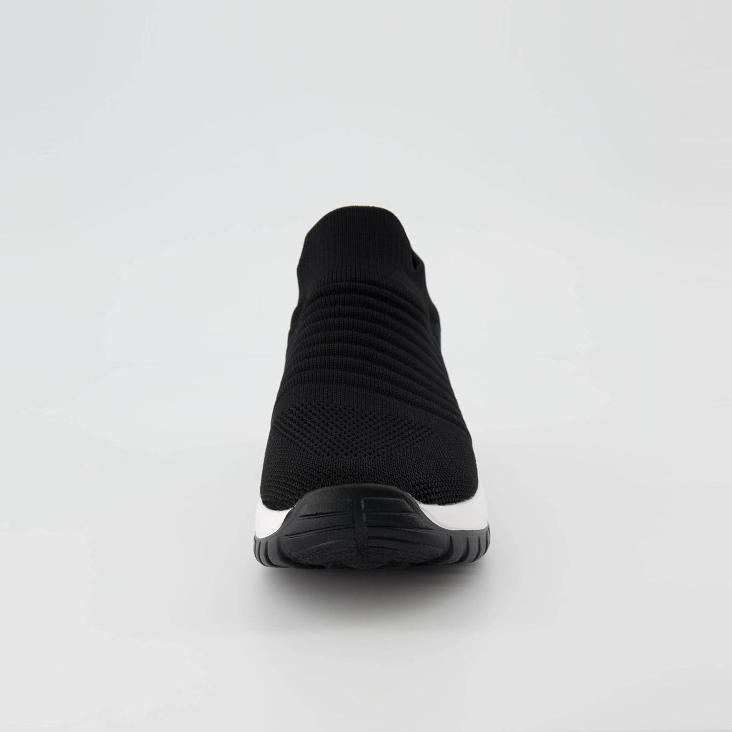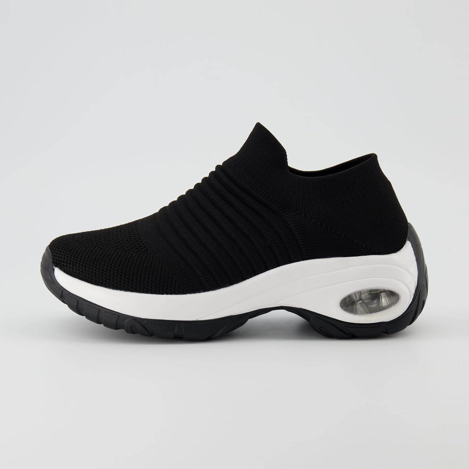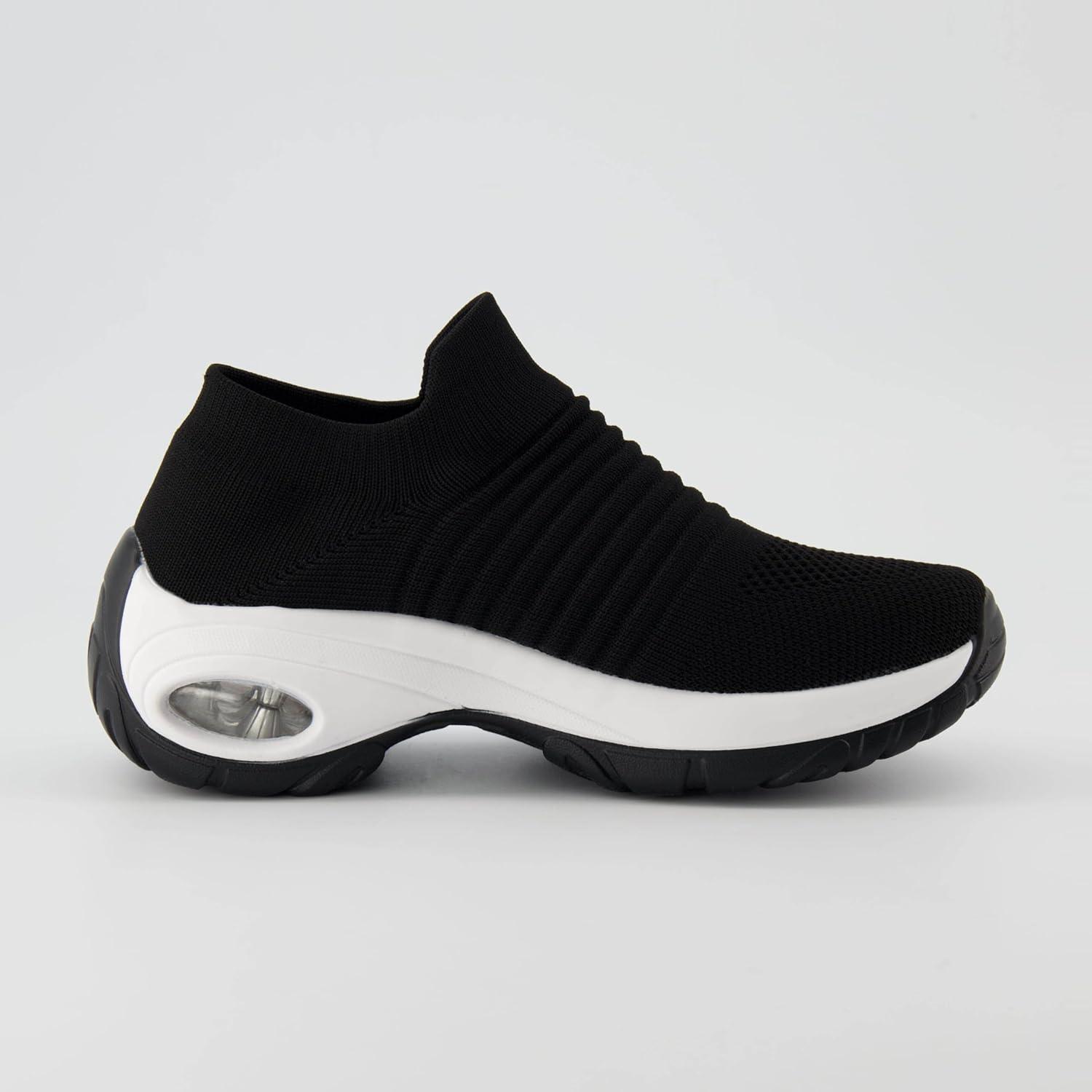 CUSHIONAIRE Women’s Breeze Stretch Knit Slip on Sneaker +Memory Foam & LiteSole Technology(Black/Wht)
