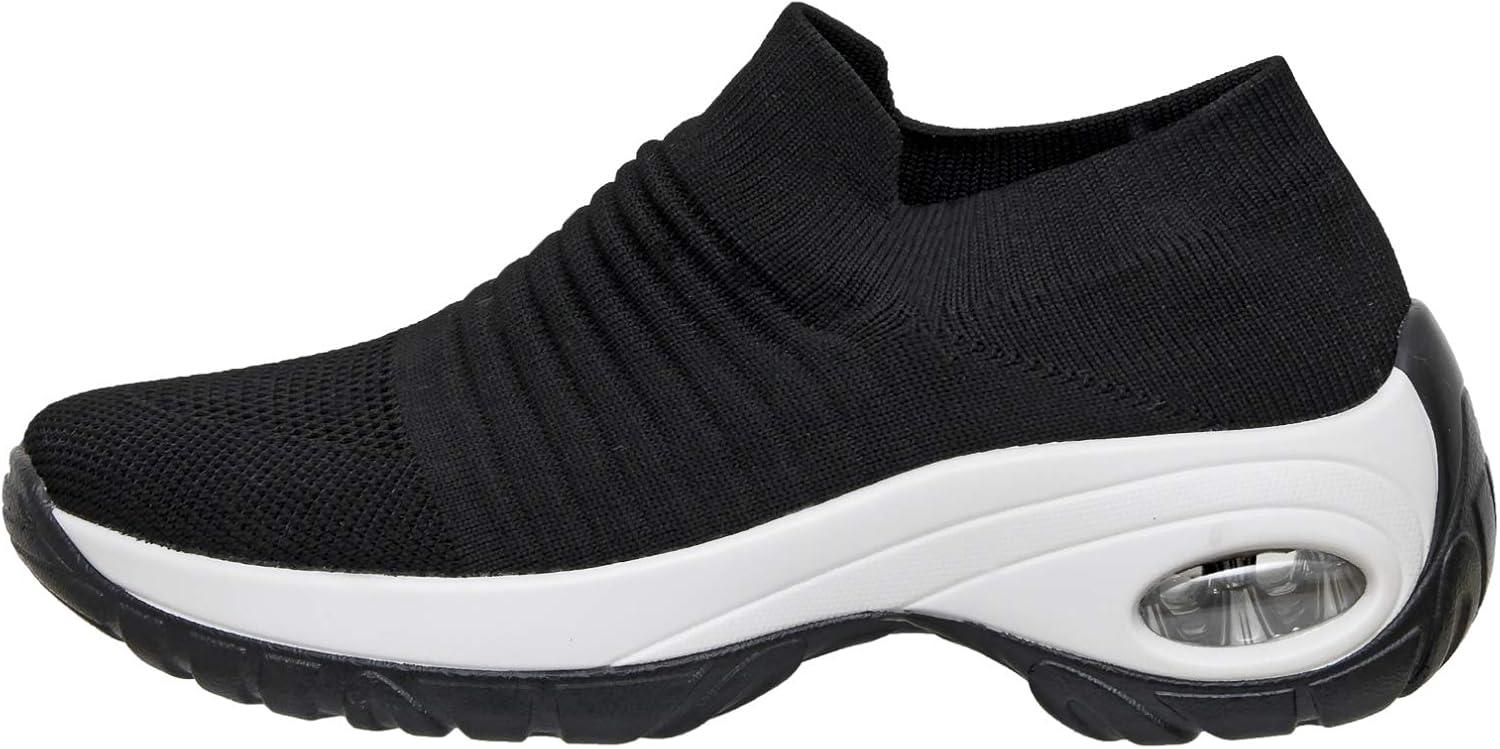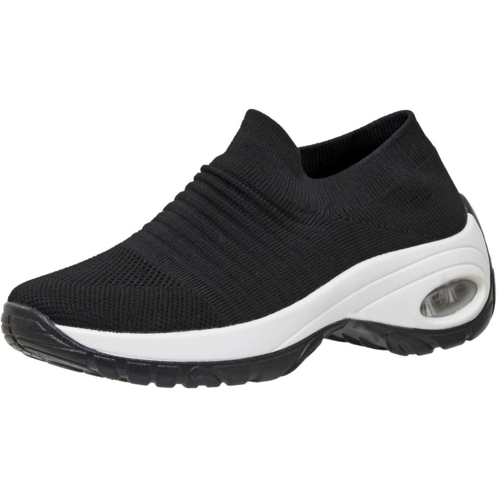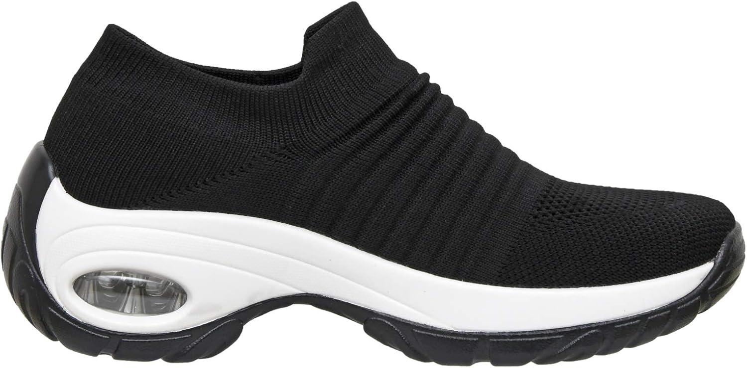 CUSHIONAIRE Women’s Breeze Stretch Knit Slip on Sneaker +Memory Foam & LiteSole Technology(Black/Wht)