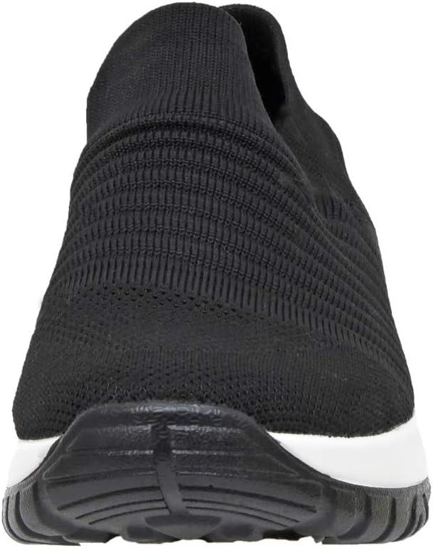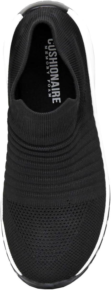 CUSHIONAIRE Women's Breeze Stretch Knit Slip on Sneaker +Memory Foam & LiteSole Technology(Black/Wht)