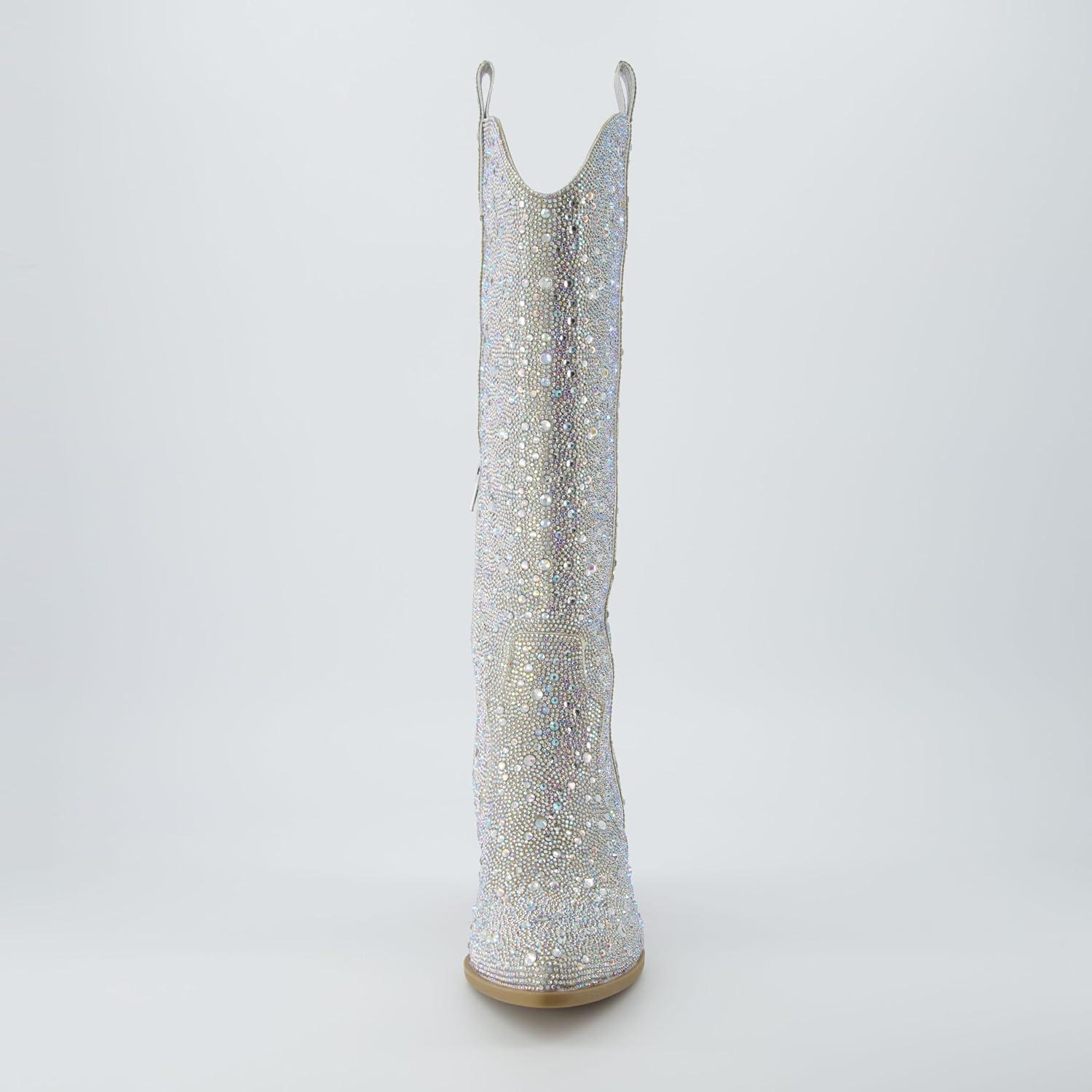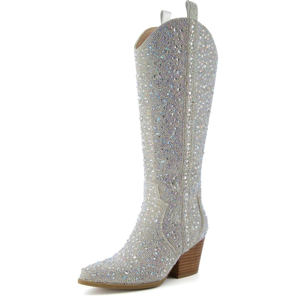 CUSHIONAIRE Women’s Caress tall western boot +Memory Foam, Wide Widths Available(Silver)