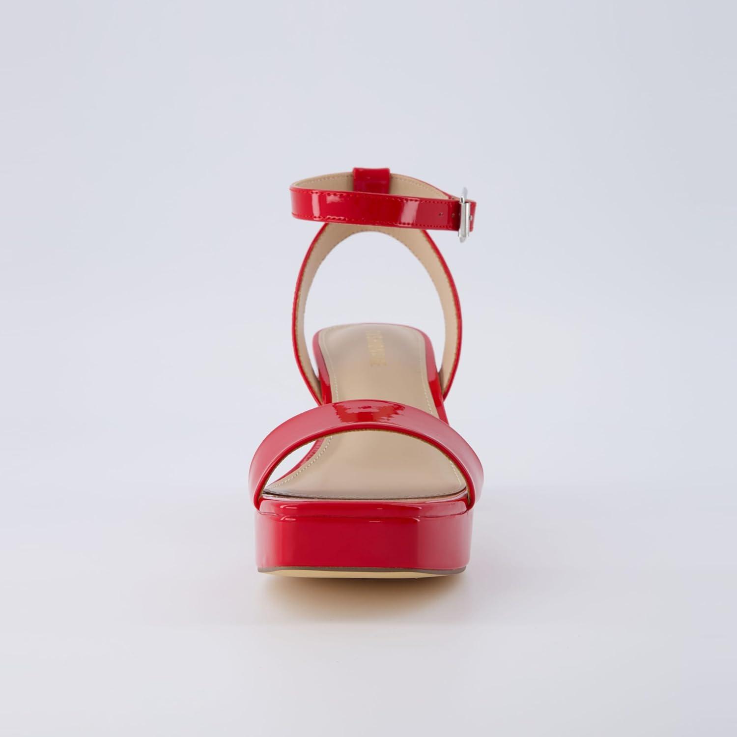 CUSHIONAIRE Women’s Cherry platform dress sandal +Memory Foam and Wide Widths Available(Red Patent)