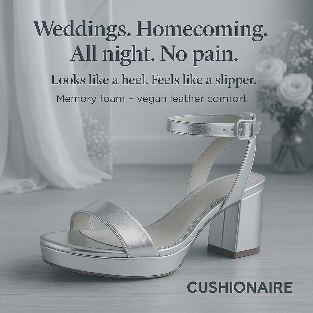 Save up to 40% on CUSHIONAIRE Women’s Cherry platform dress sandal +Memory Foam and Wide Widths Available(Silver) styles during our end-of-season sale.