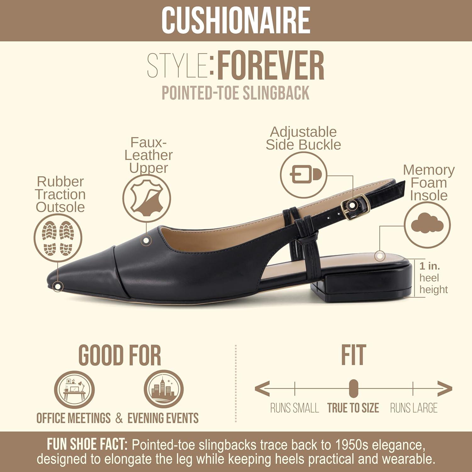 imageCUSHIONAIRE Womens Forever Pointed Toe Sling Back Dress Shoe Memory Foam Wide Widths Available Cream SmoothBlack Smooth