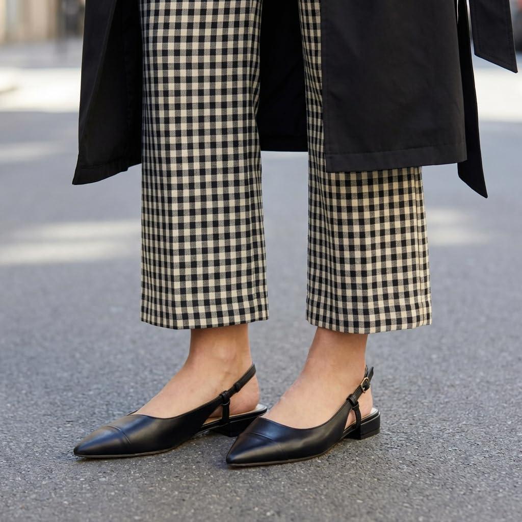 CUSHIONAIRE Women's Forever Pointed Toe Sling Back Dress Shoe +Memory Foam, Wide Widths Available, Cream Smooth(Black Smooth)