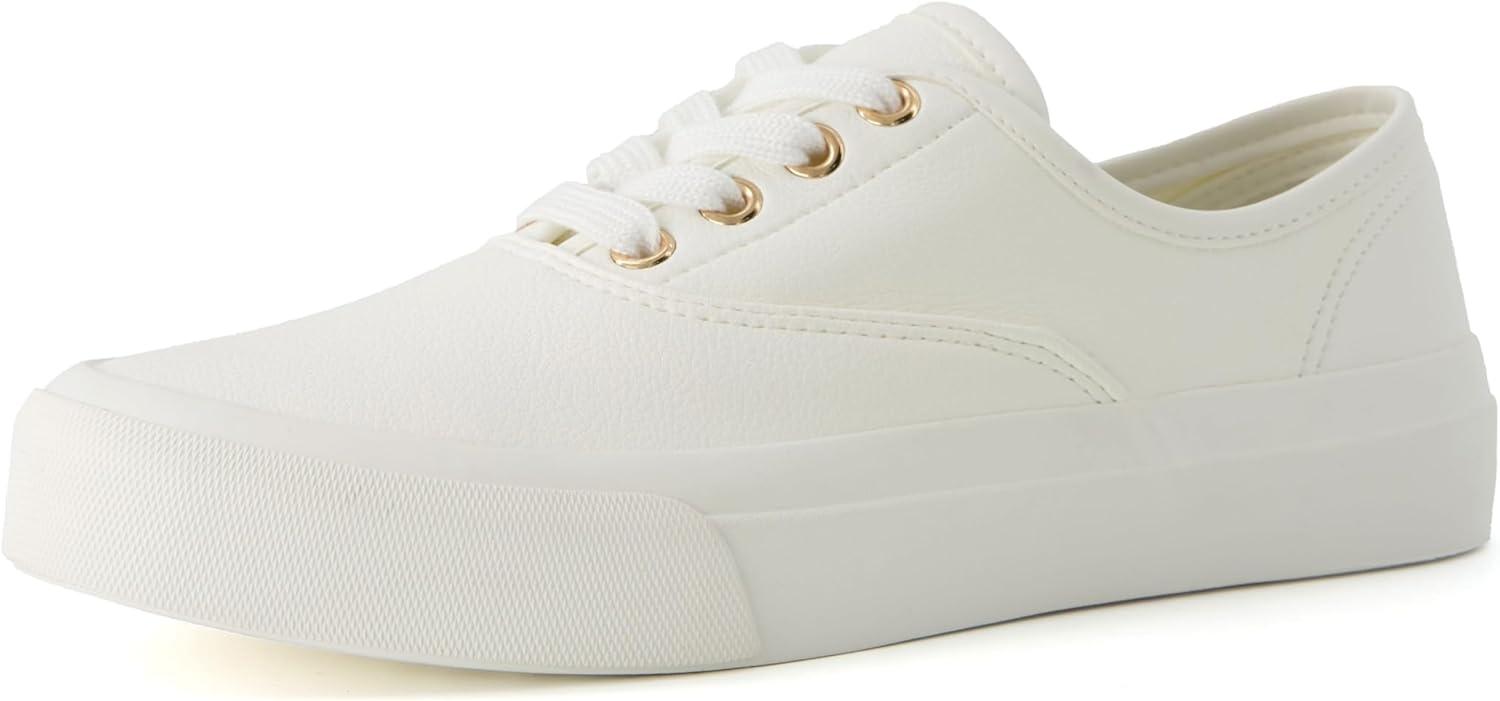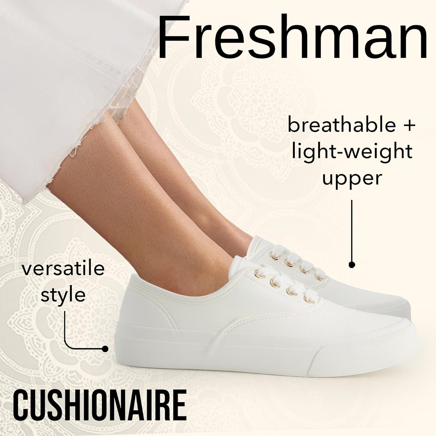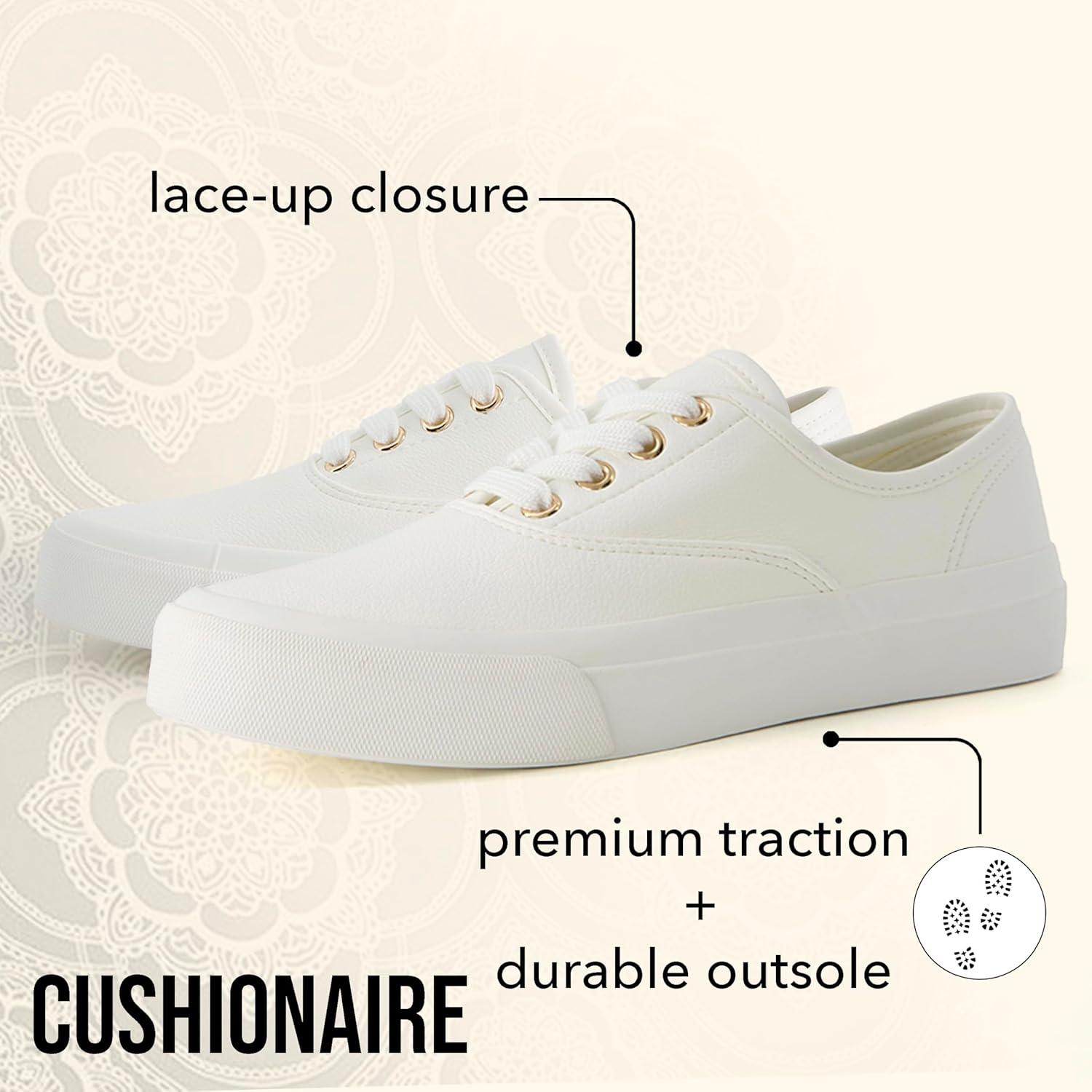 CUSHIONAIRE Women’s Freshman Canvas Lace-Up Sneaker with Memory Foam, Wide Widths Available | Casual Walking Shoes, Lightweight & Comfortable(White Smooth)