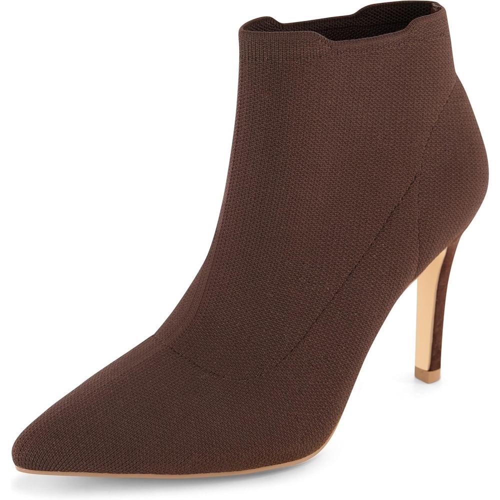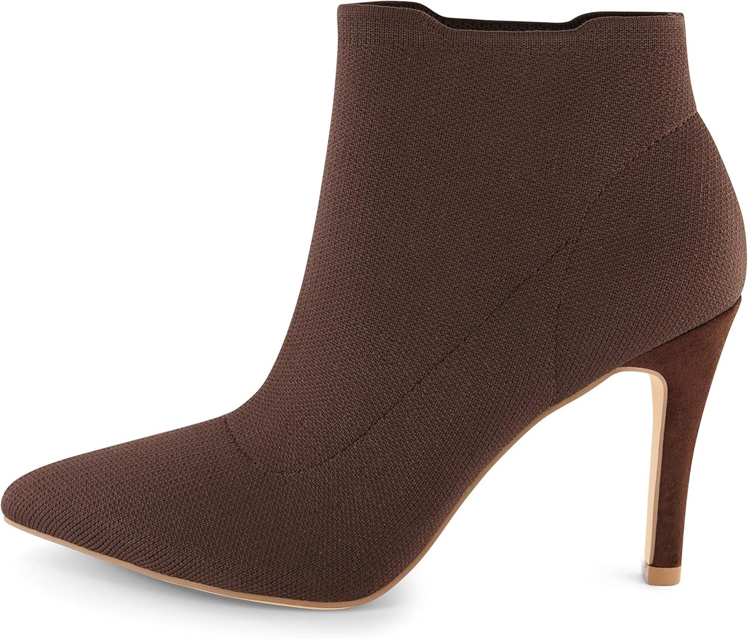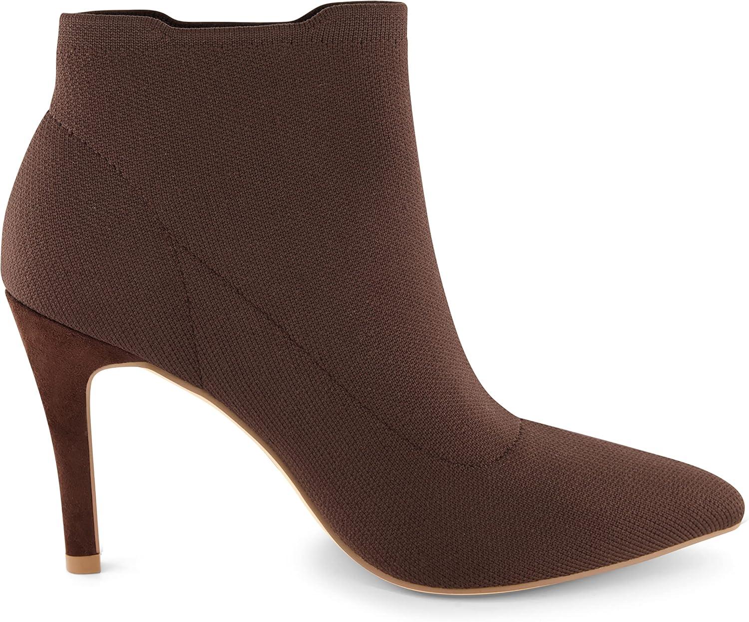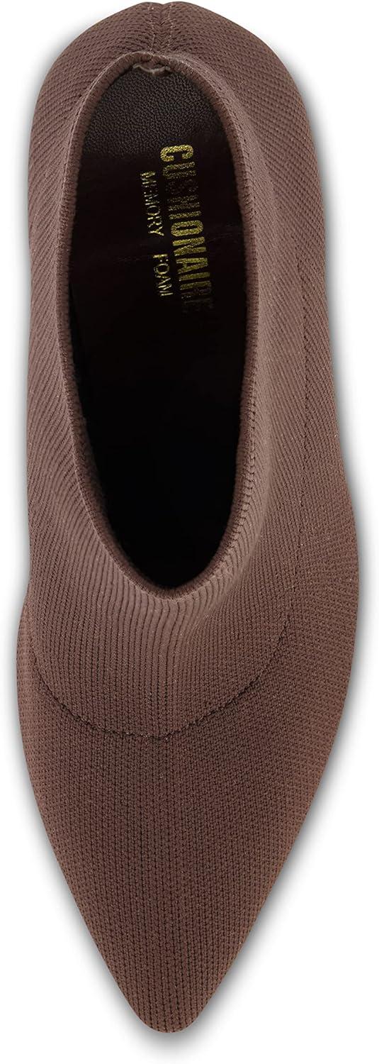 CUSHIONAIRE Women’s Genie Stretch Knit Heel Bootie +Memory Foam padding, Wide Widths Available(Brown)