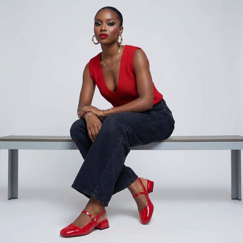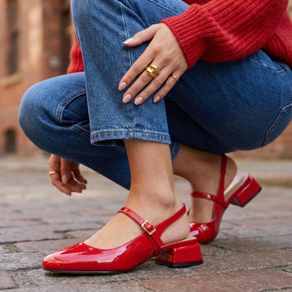 Be the first to review “CUSHIONAIRE Women’s Gogo Round Toe Mary Jane Dress Shoe +Memory Foam, Wide Widths Available(Red)”