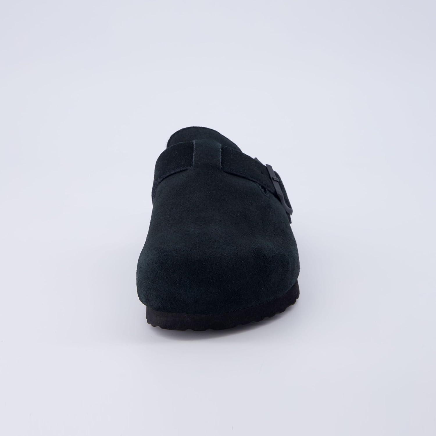 CUSHIONAIRE Women's Hana Cork footbed clog with Genuine Leather upper, Faux Fur lining, and +Comfort(Black)