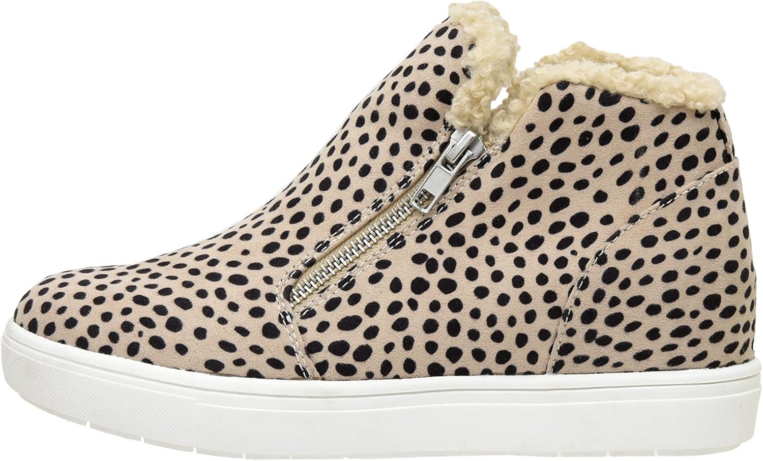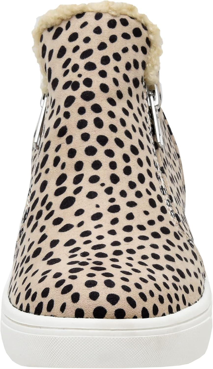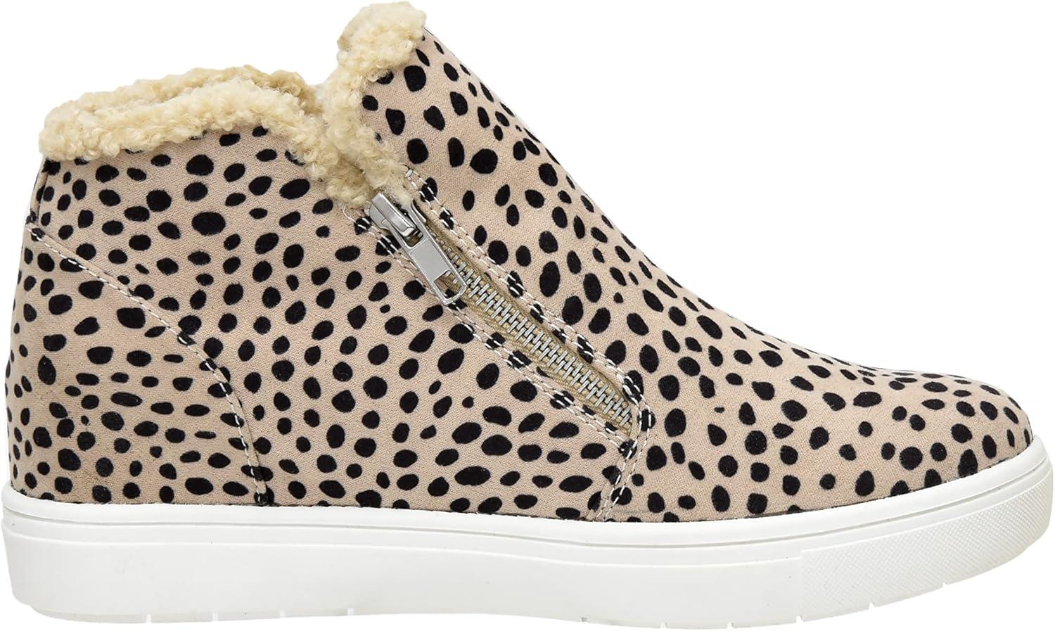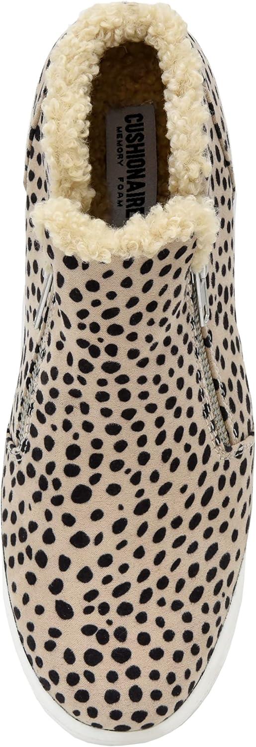 CUSHIONAIRE Women's Heaven Hidden Wedge Faux Shearling Sneaker +Memory Foam(Spotted Cheetah)