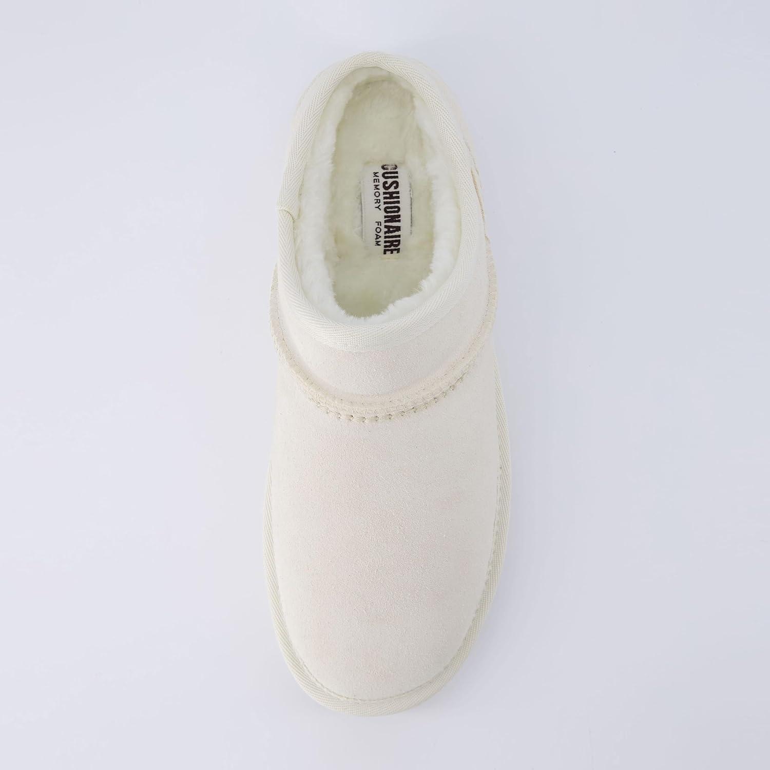 CUSHIONAIRE Women's Hilo 2 Premium Suede Slip-On House Slippers – Clog Slippers for Women, Memory Foam, Faux Shearling, Wide Widths Available(Off White 2)