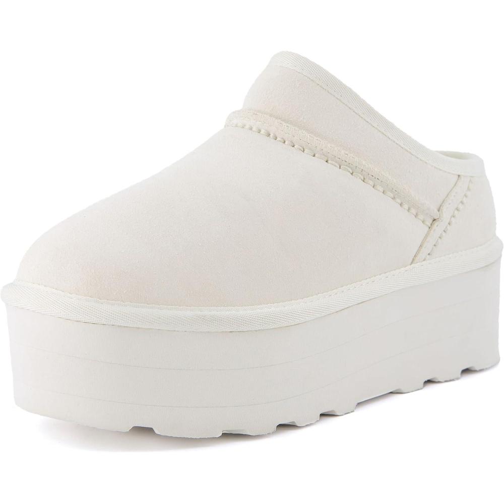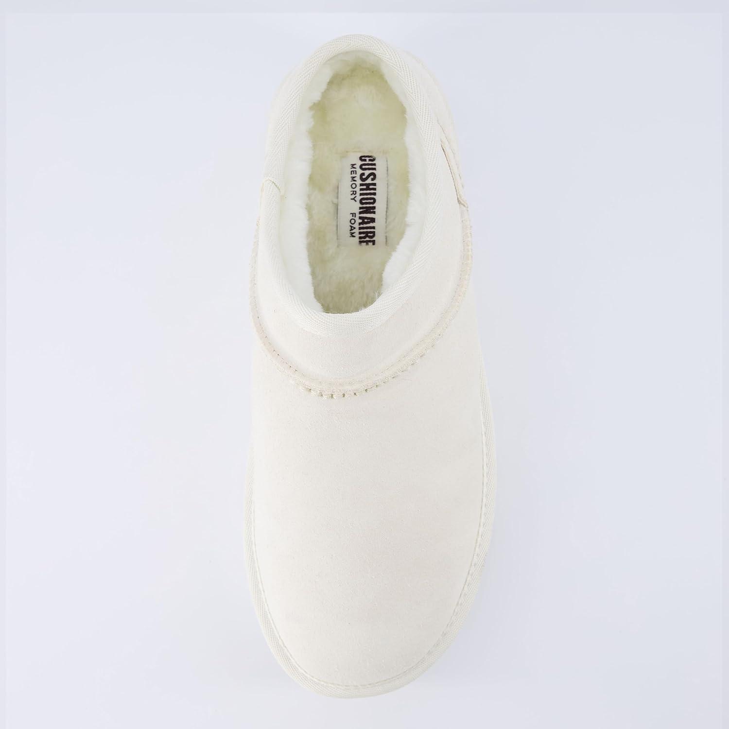 CUSHIONAIRE Women’s Huggy Genuine Suede Cozy Mule Platform +Memory Foam, Wide Widths Available(Off-white)