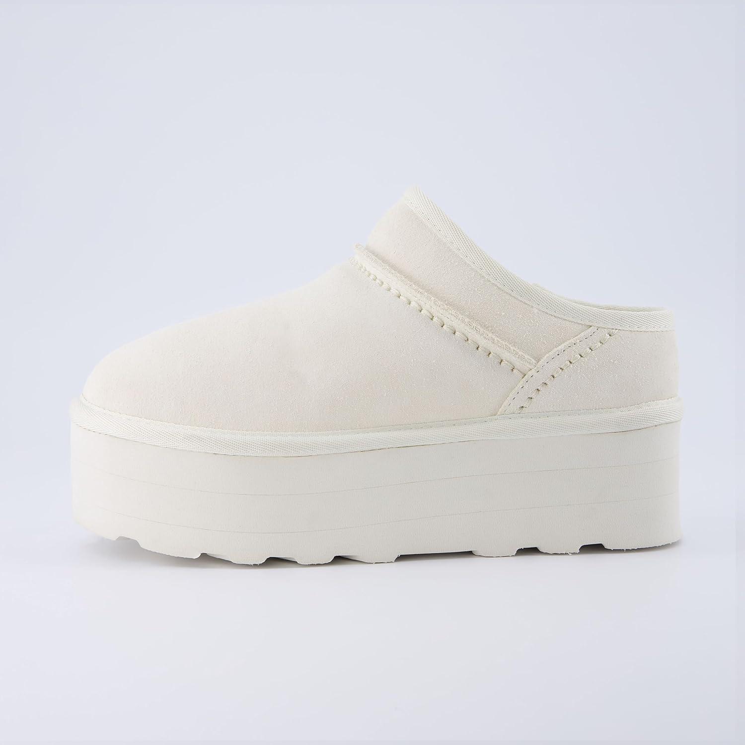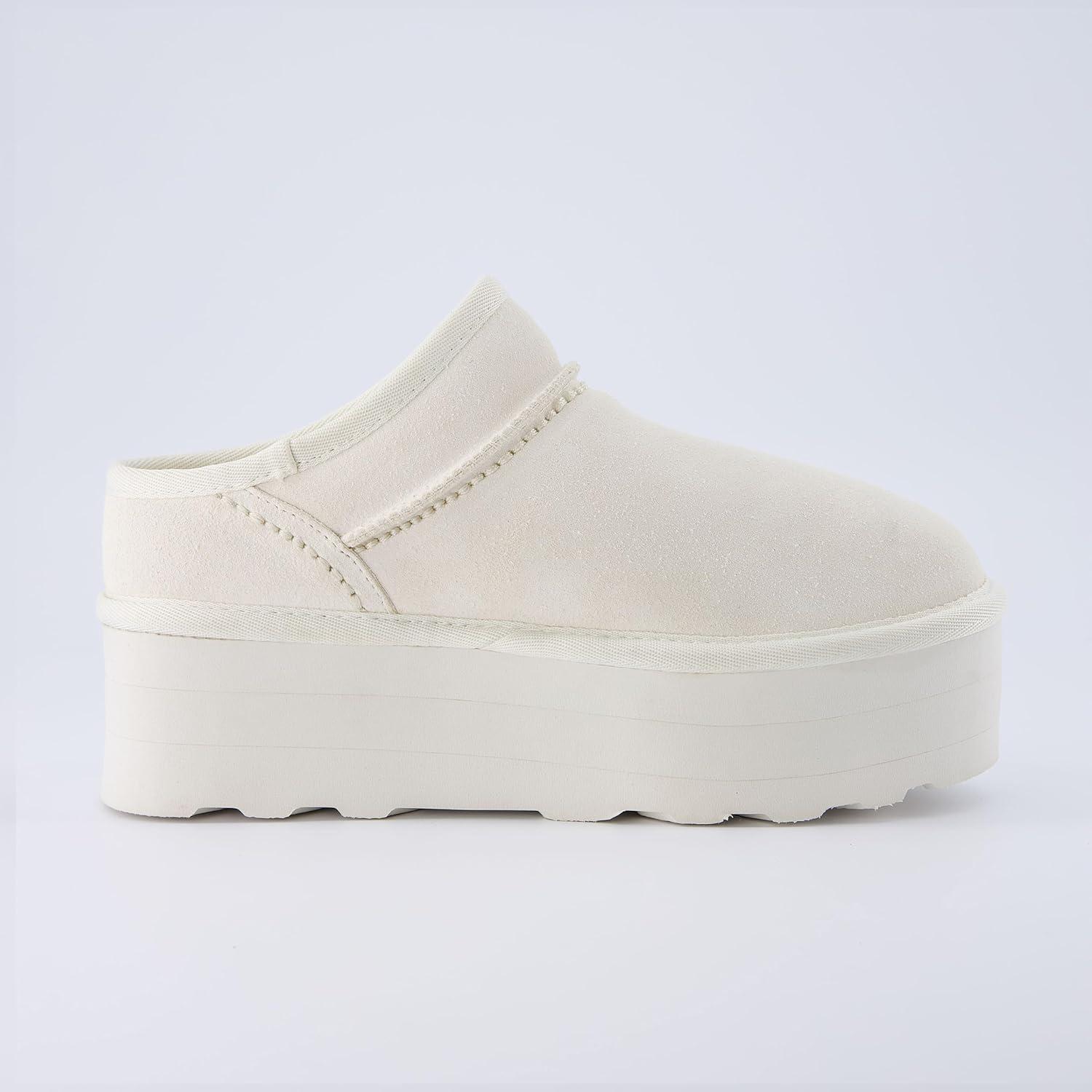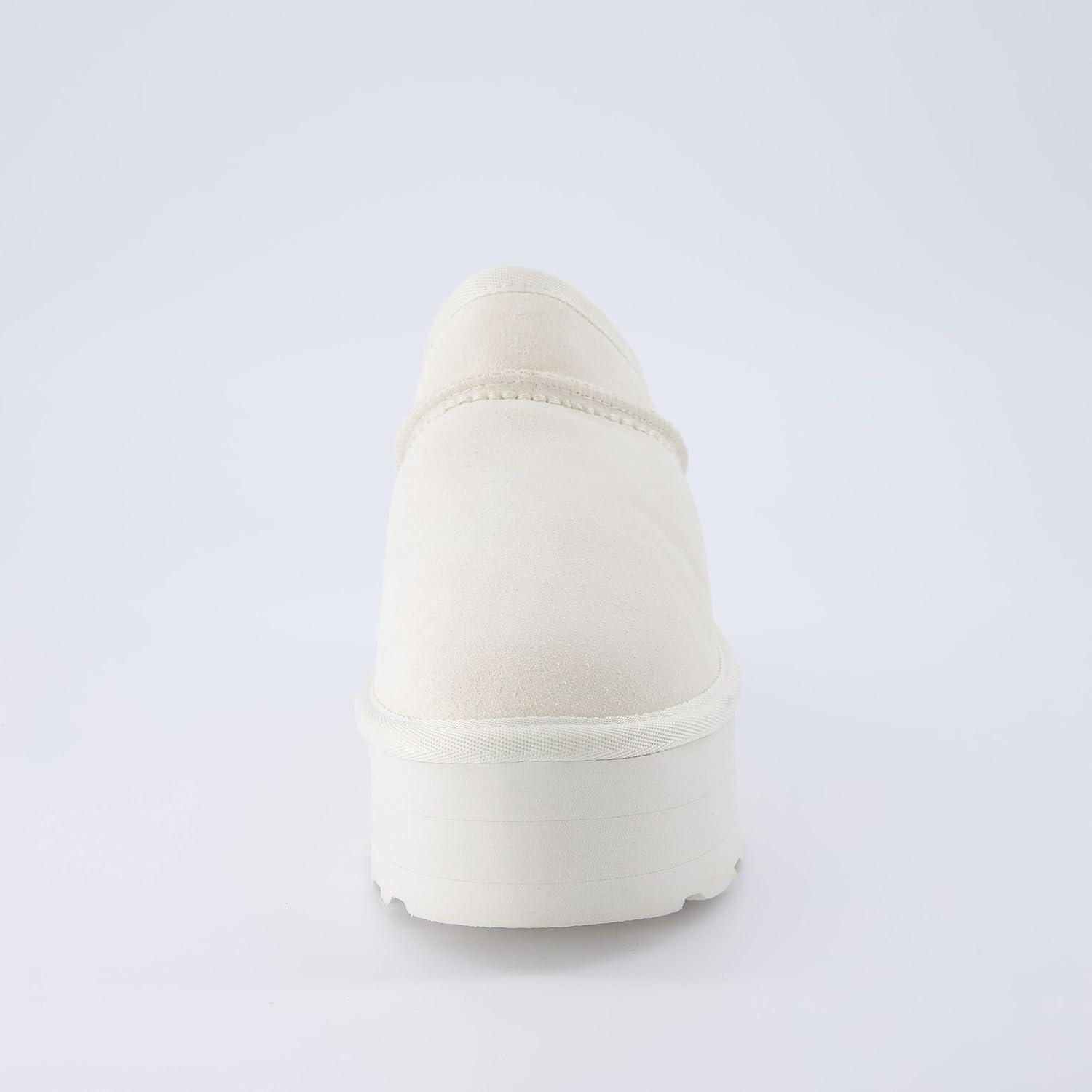 CUSHIONAIRE Women's Huggy Genuine Suede Cozy Mule Platform +Memory Foam, Wide Widths Available(Off-white)