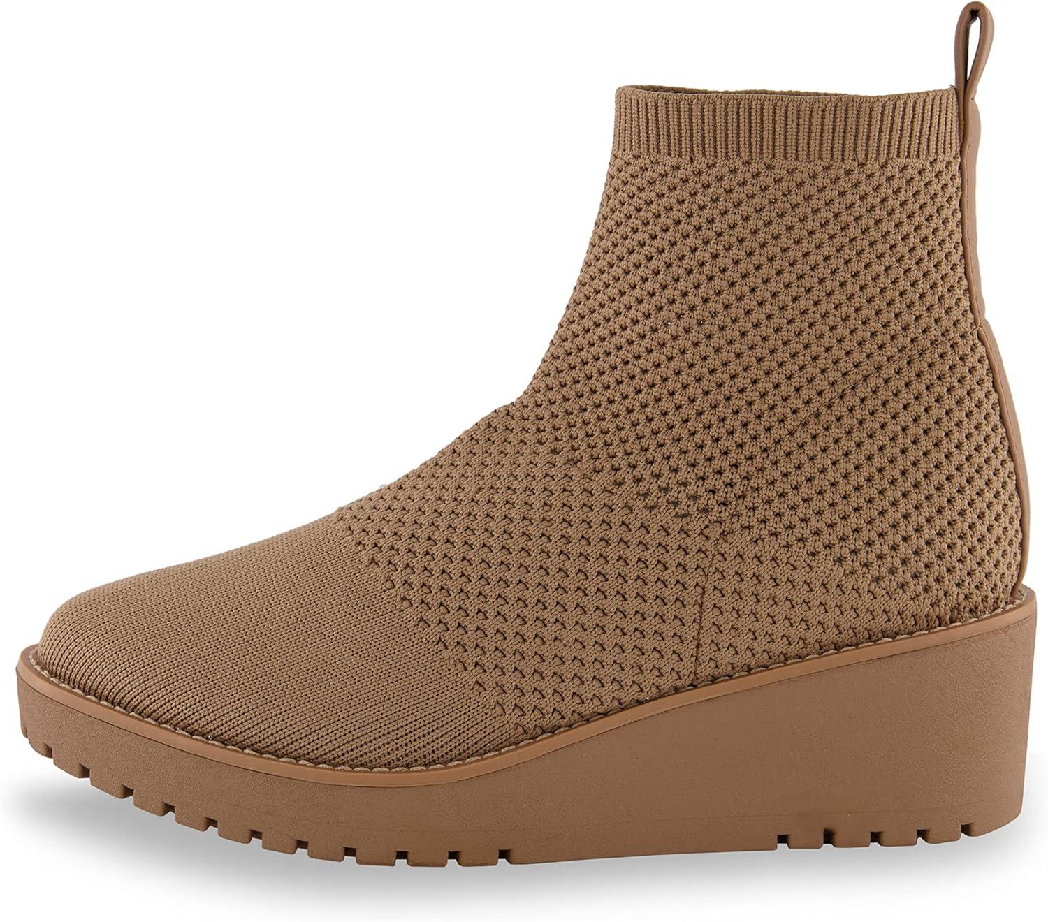 CUSHIONAIRE Women’s Iggy stretch knit wedge boots +Memory Foam, Wide Widths Available(Taupe)