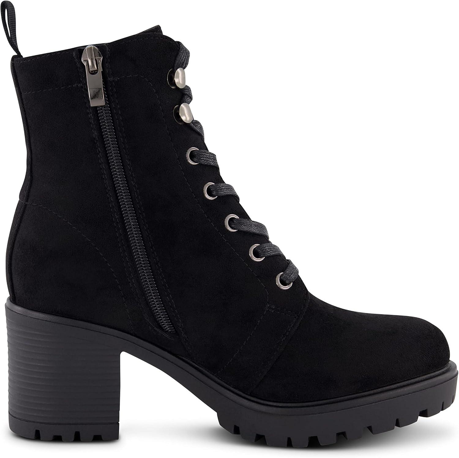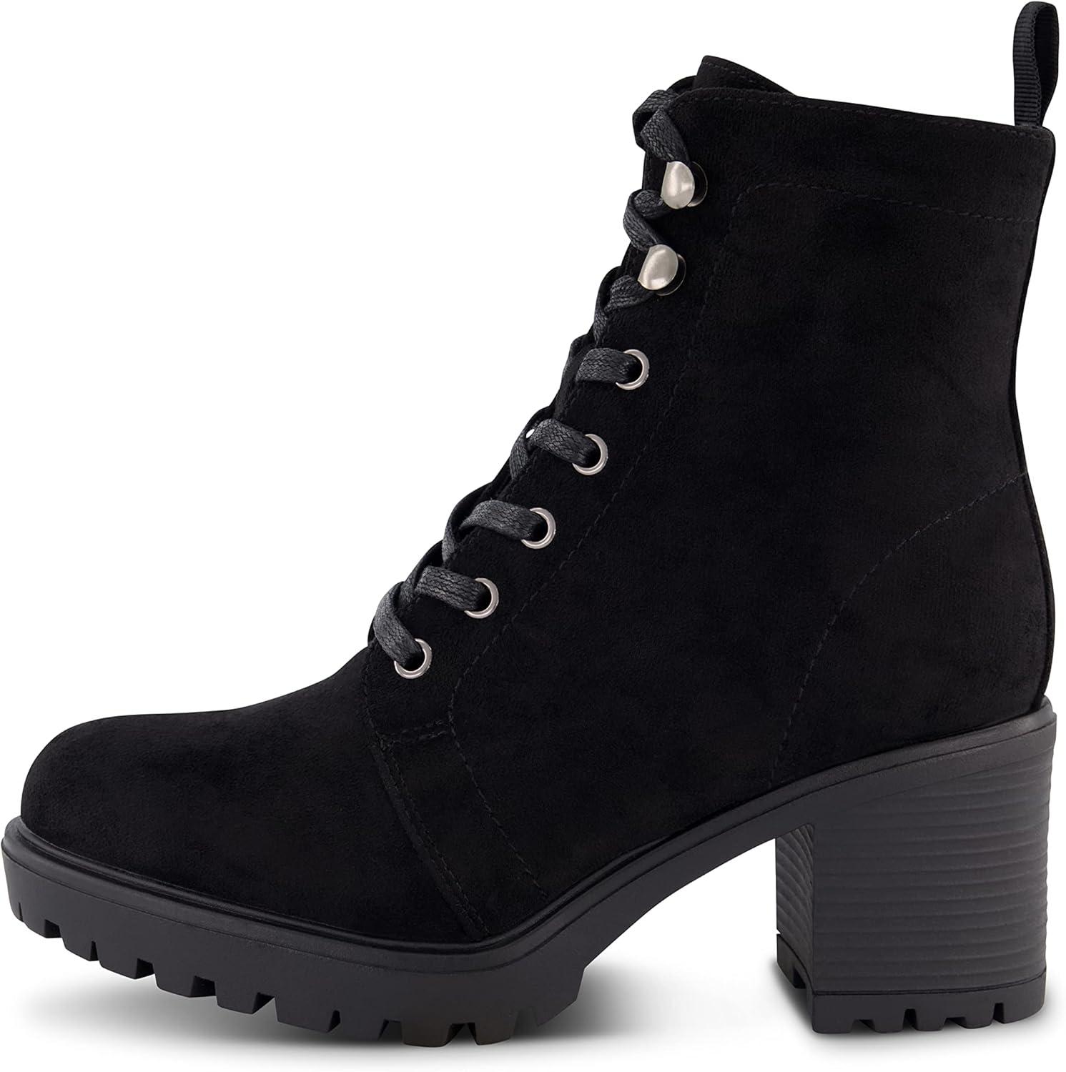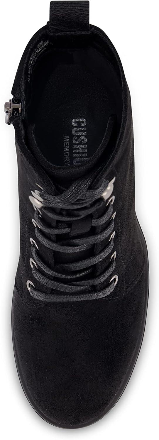 CUSHIONAIRE Women’s James lace up boot +Memory Foam, Wide Widths Available(Black Faux Suede)