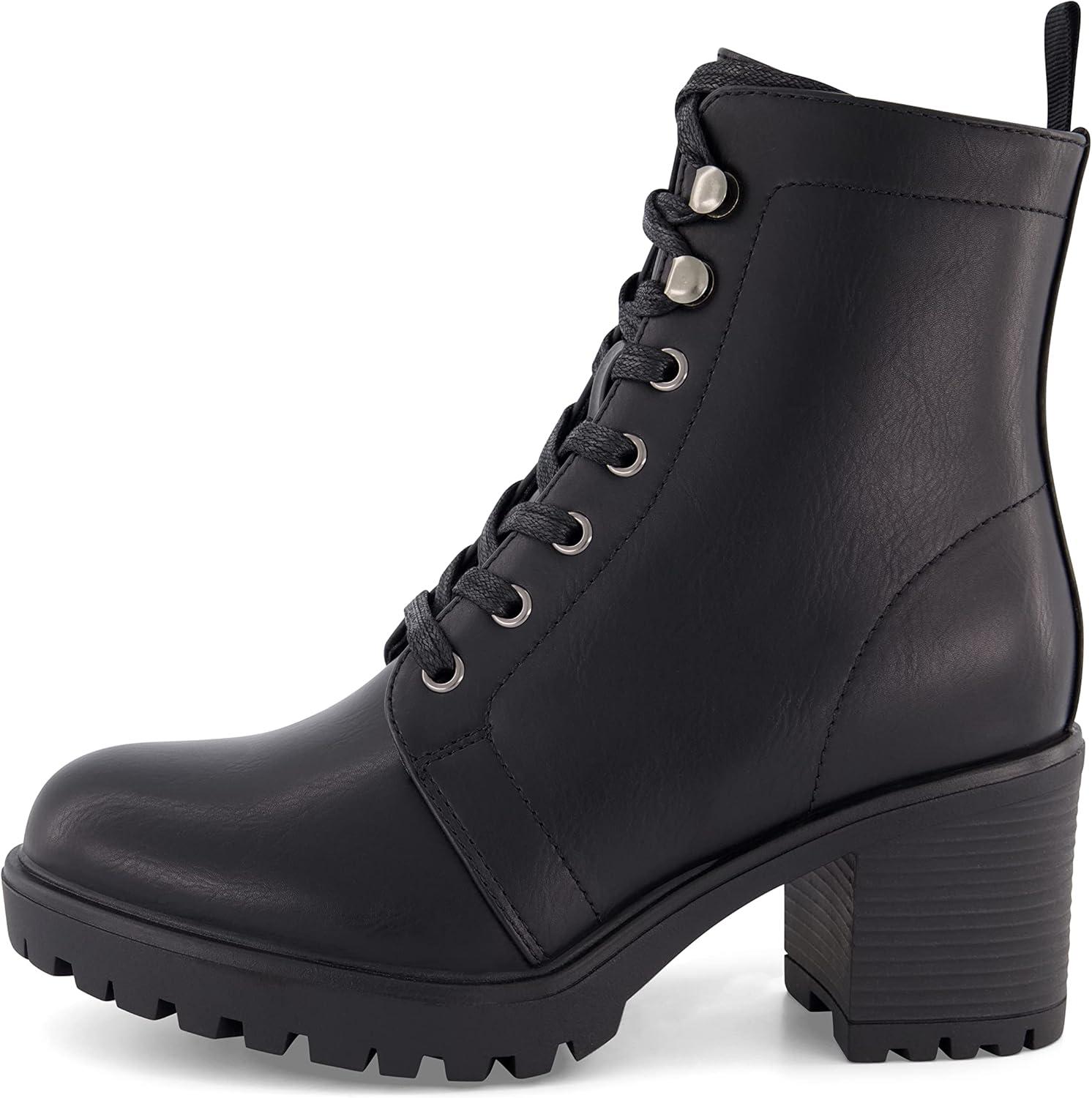 CUSHIONAIRE Women’s James lace up boot +Memory Foam, Wide Widths Available(Black Nappa)