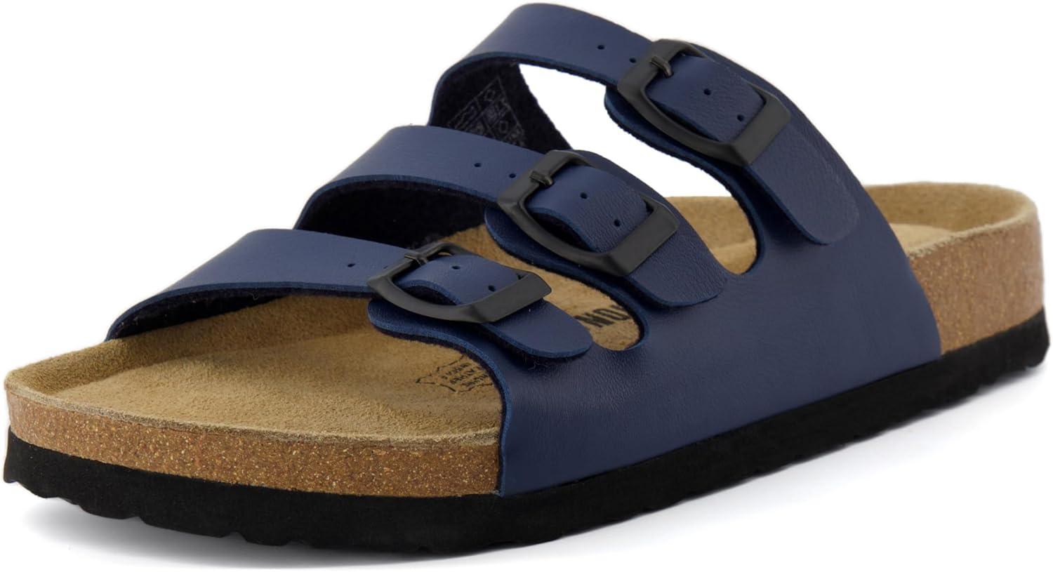 CUSHIONAIRE Women’s Lela Cork footbed Sandal with +Comfort(Navy Nappa)