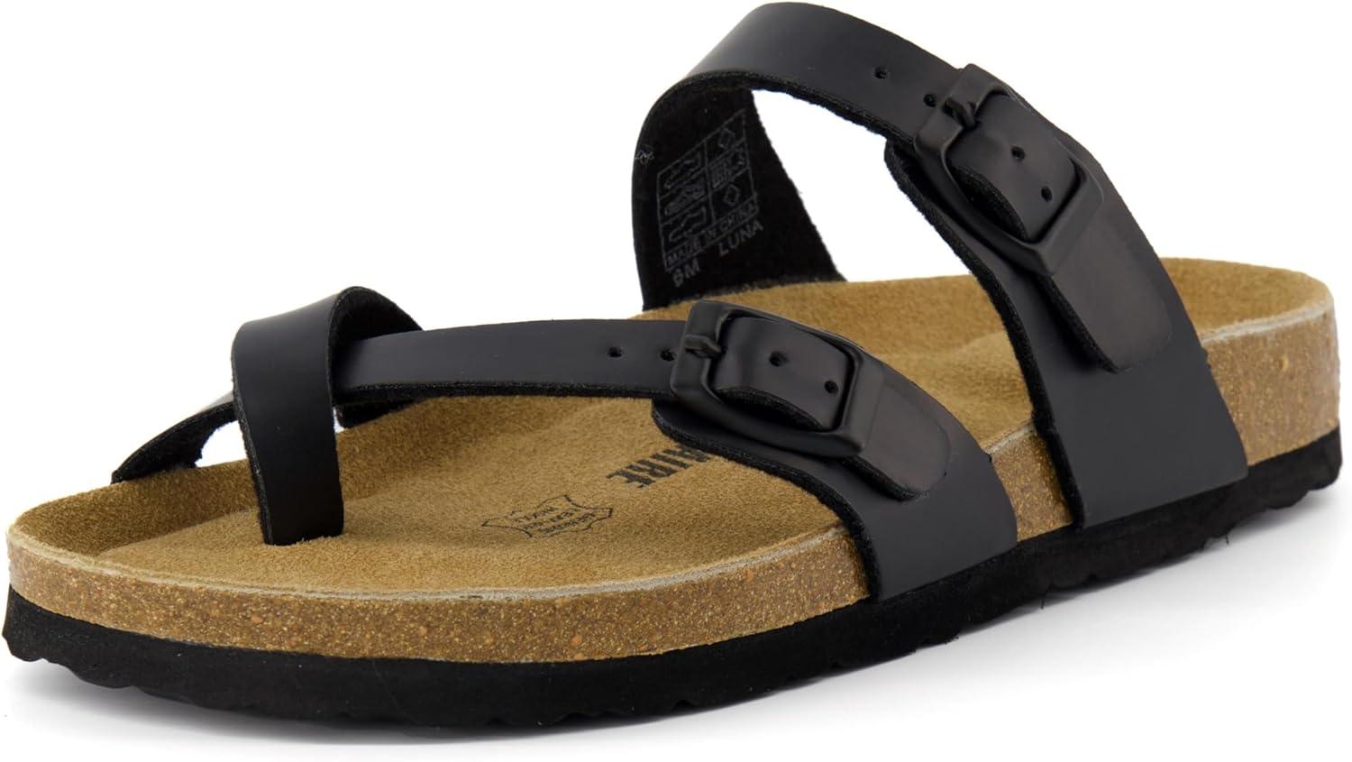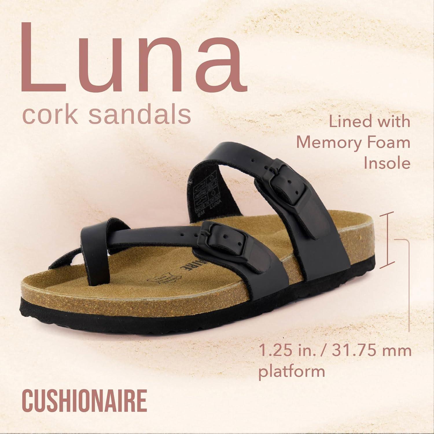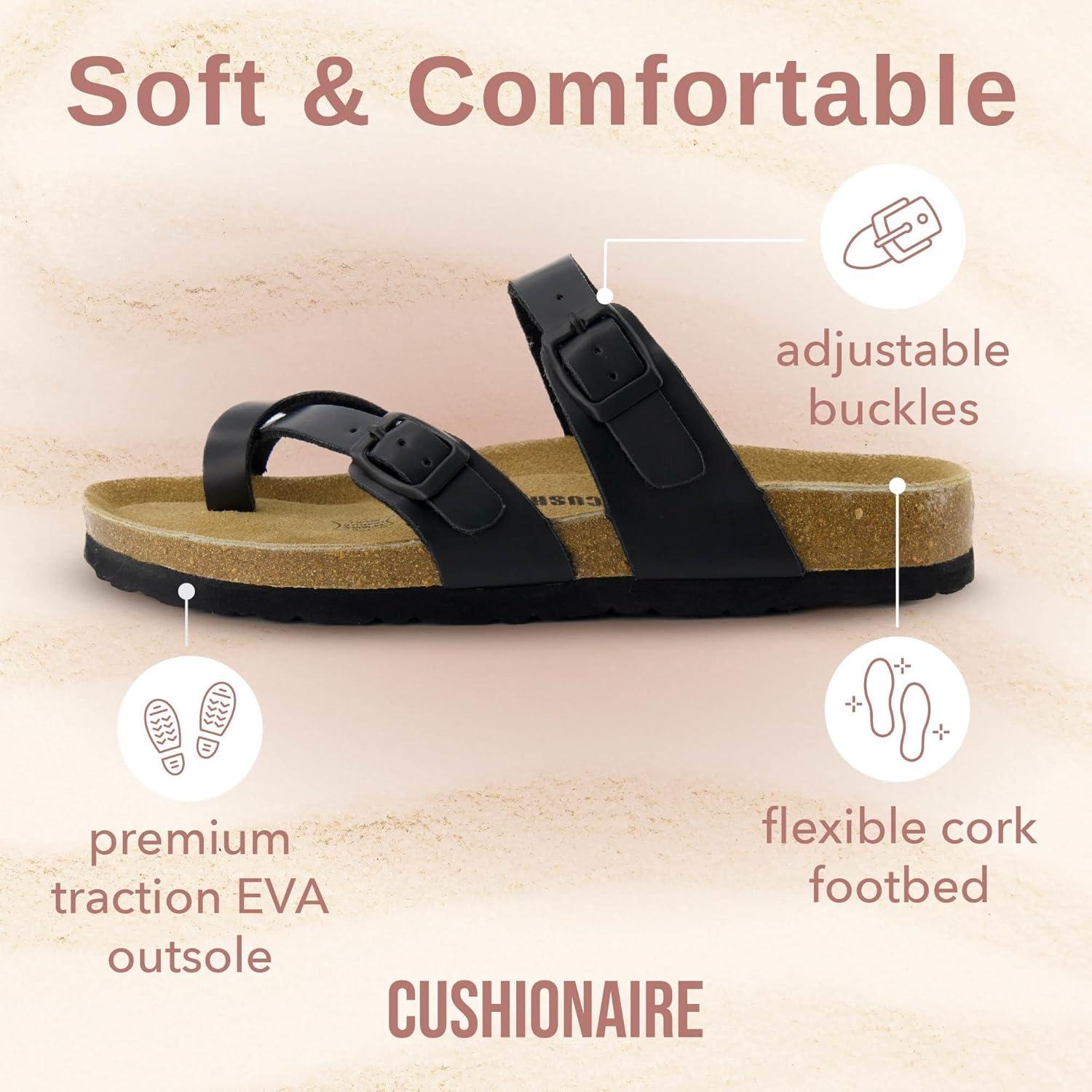 CUSHIONAIRE Women’s Luna Cork Footbed Sandal With +Comfort(Black Oily)