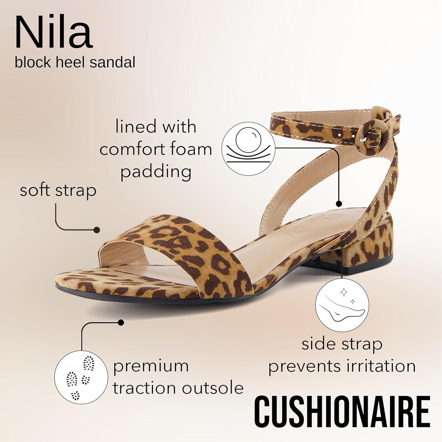 CUSHIONAIRE Women’s Nila one band low block heel sandal +Wide Widths Available(Leopard)