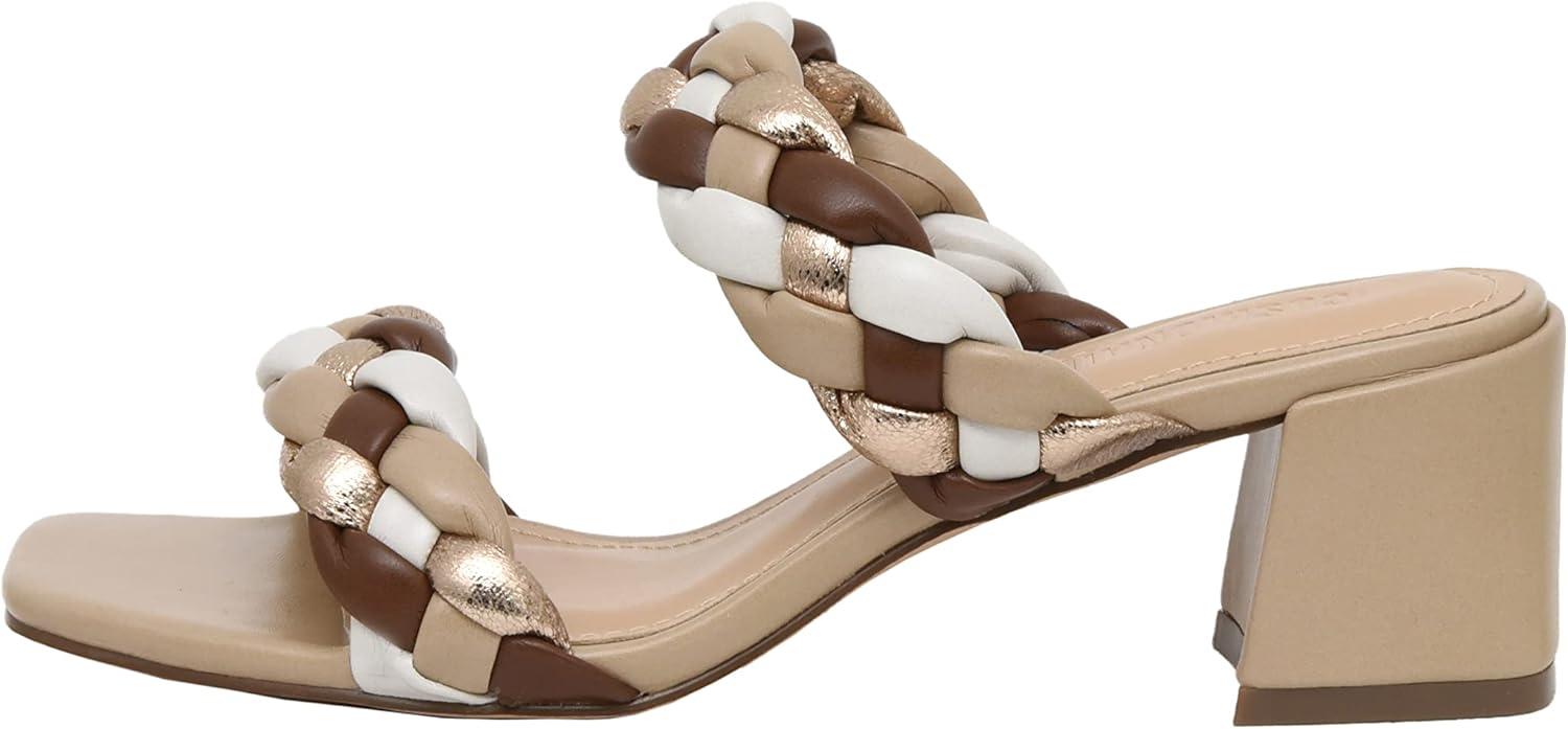 CUSHIONAIRE Women's Onyx braided Heel Sandal +Memory Foam, Wide Widths Available(Tan Multi)