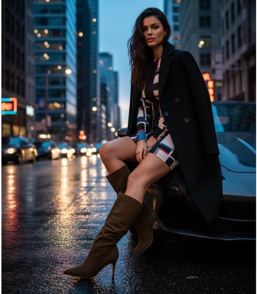 CUSHIONAIRE Women’s Porsha Slouchy Vegan Suede Mid-Calf Scrunch Boot with Pointed Toe, Memory Foam & 3-Inch Heel | Wide Widths Available(Chocolate)