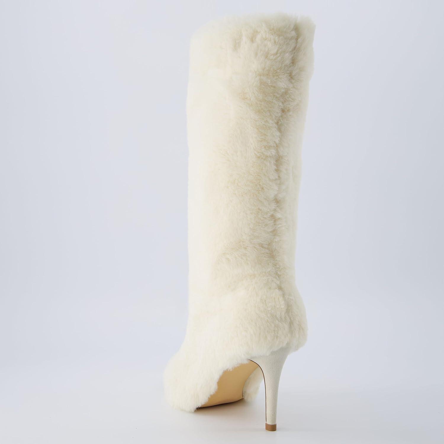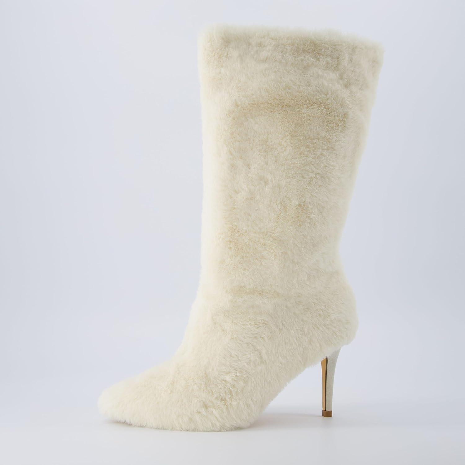 Step into ultimate comfort and style with CUSHIONAIRE women's faux fur mid-calf stiletto boots. Designed with a fuzzy, furry exterior, these boots offer a bold, fashion-forward look while keeping your feet warm and cozy. The sleek stiletto heel adds a chic touch, making them perfect for turning heads on a night out or elevating your everyday winter outfits. Featuring memory foam insoles for superior comfort and available in wide widths, these boots ensure both style and support. Ideal for those who want to make a statement with every step.